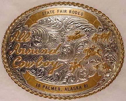 1981 ALASKA STATE FAIR RODEO ALL AROUND COWBOY CHAMPION BELT BUCKLE