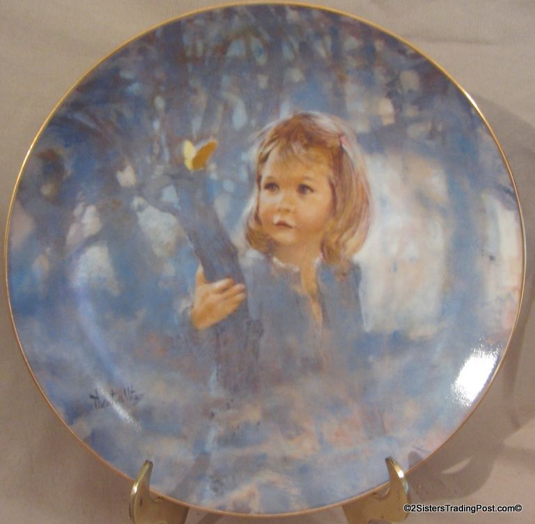 8 1/2" plate, dated 1981 'Butterfly Magic' this plate is the first in the Viletta annual plate collection 'Portraits of Childhood' by Thornton Utz. The plate has 24K gold rim, plate number 6985 A, Firing date 11-27-81, Firing master R. T, comes in the original box, with paperwork and COA. (Please see images for details)