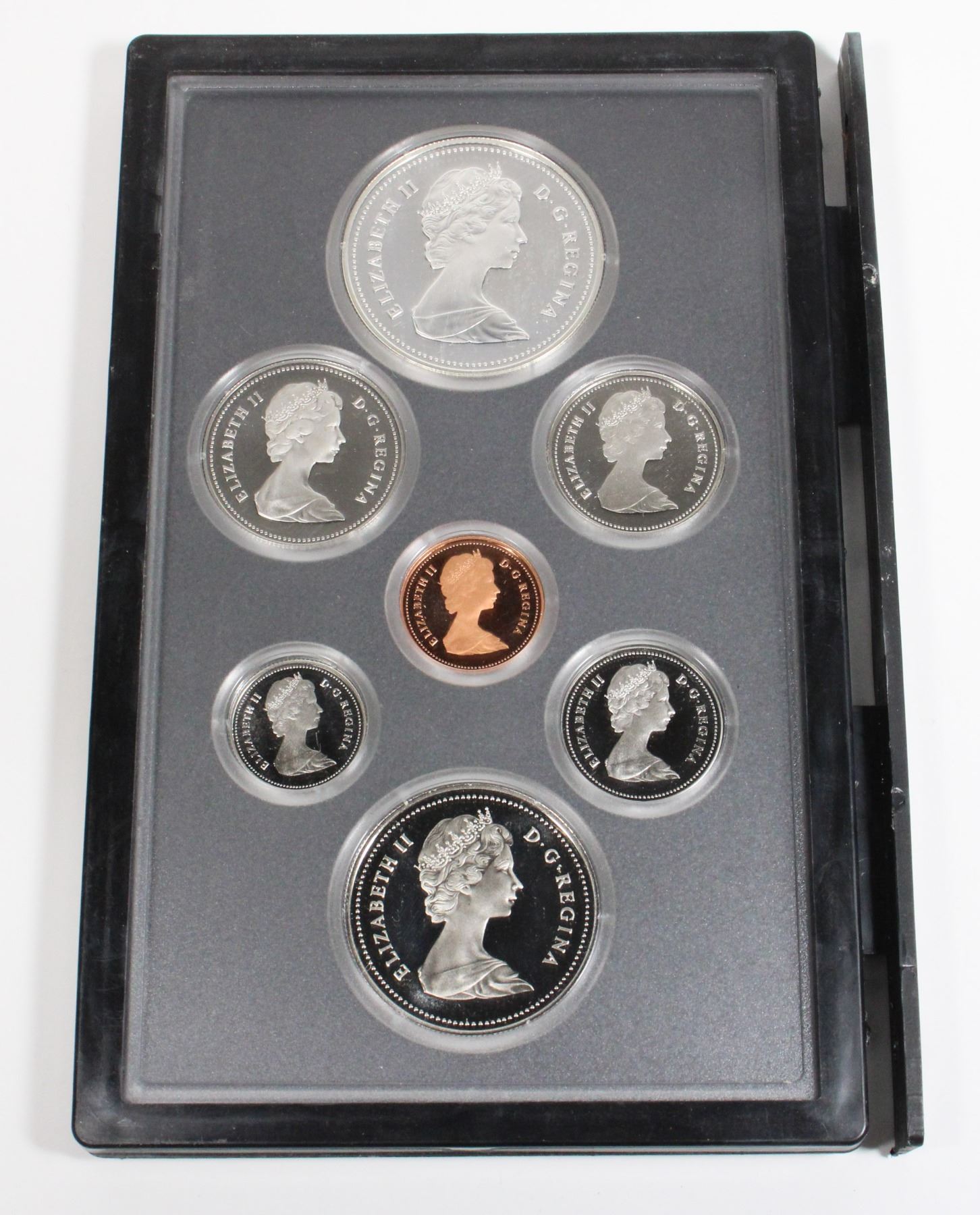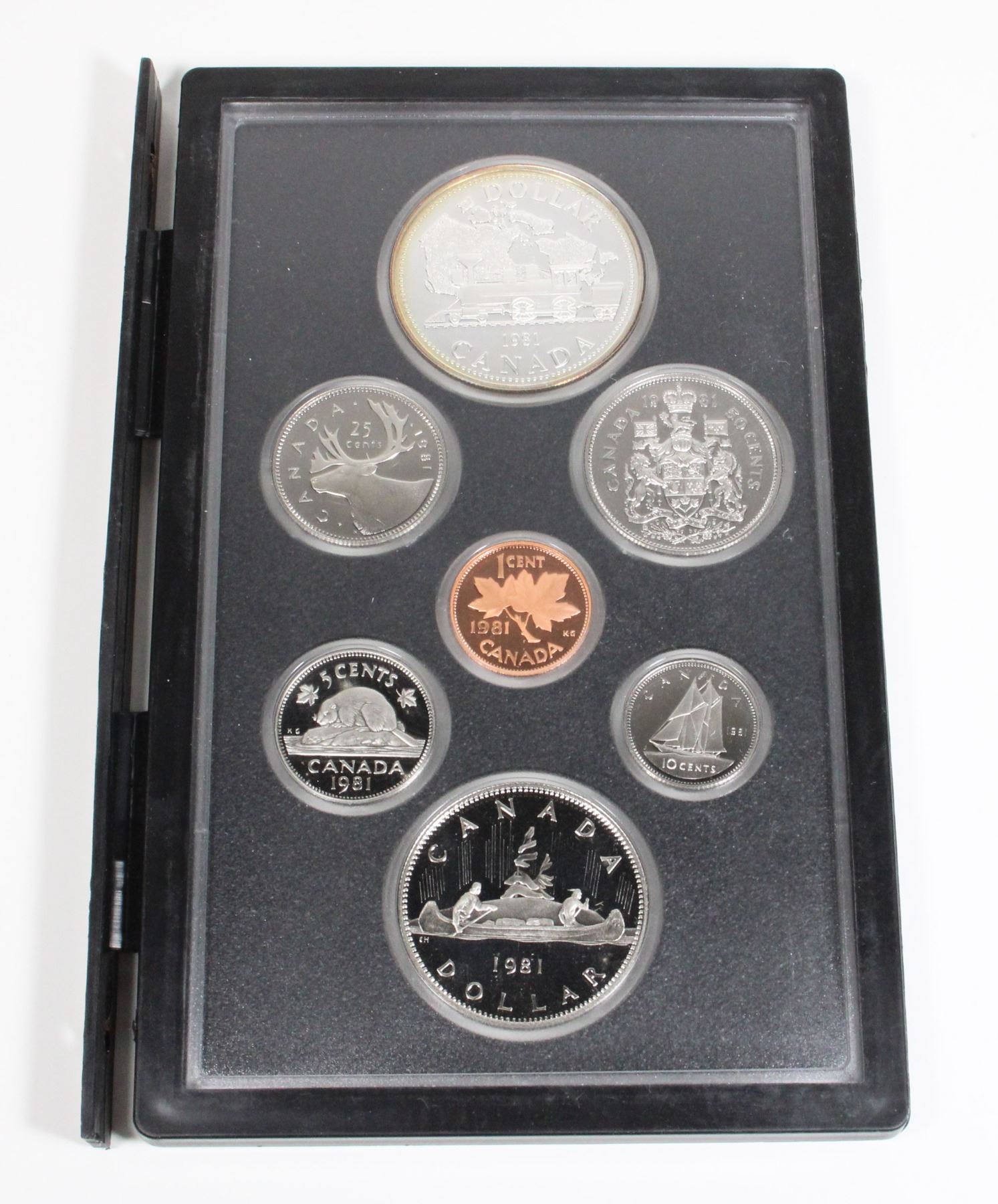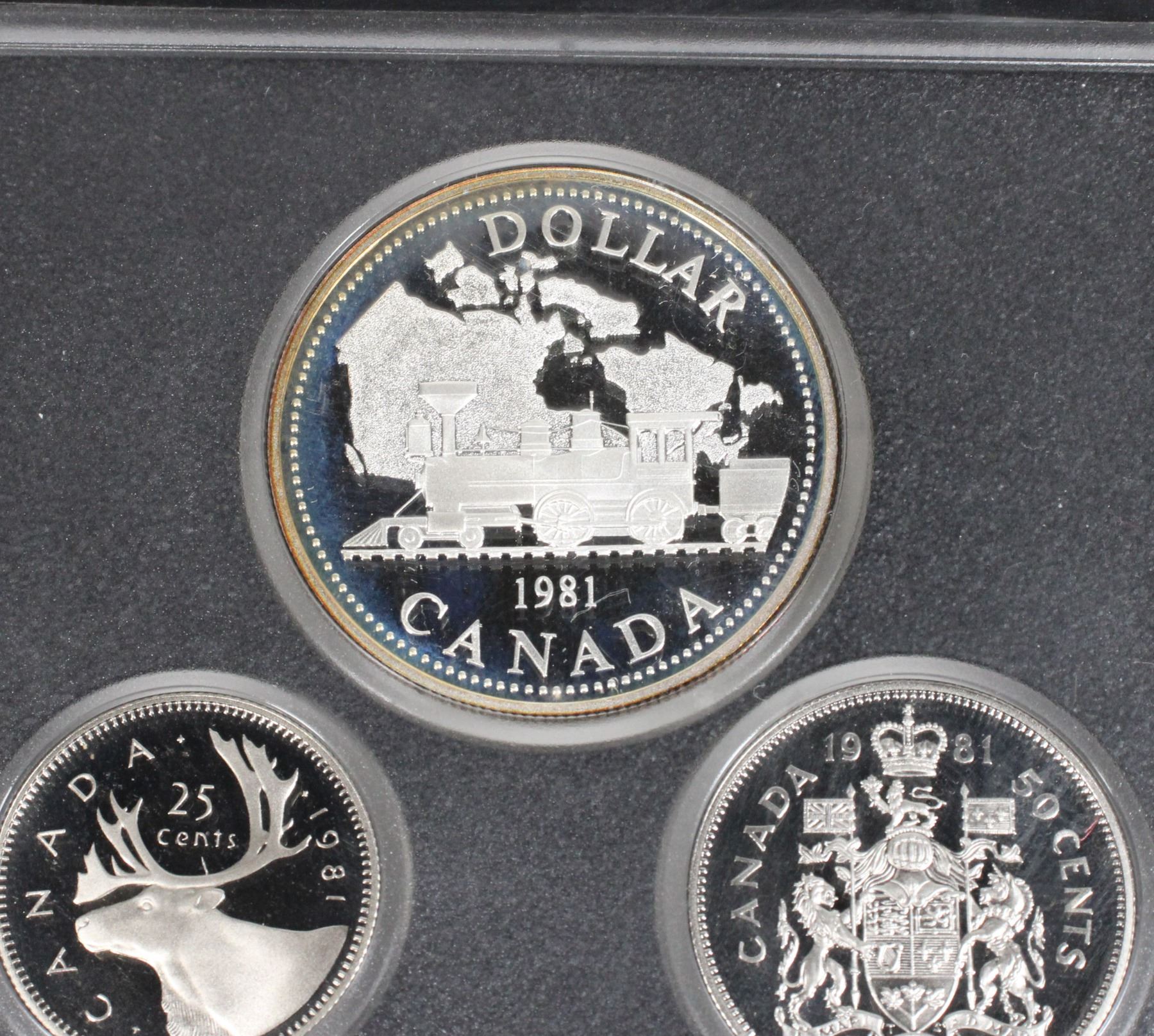 LARGER DOLLAR IS SILVER AND CELEBRATES THE TRANS-CANADA RAILWAY CENTENNIAL. NO PAPERWORK OR OUTER BOOK CASE