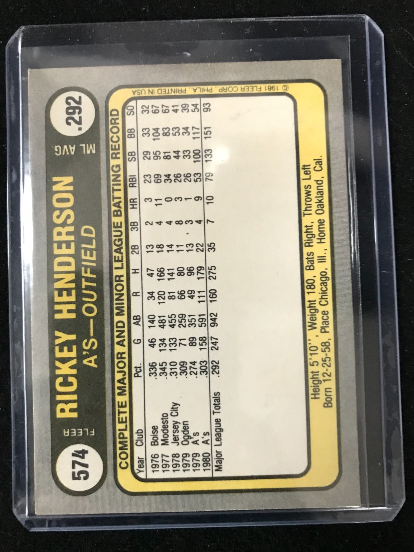 1981 DONRUSS BASEBALL RICKEY HENDERSON