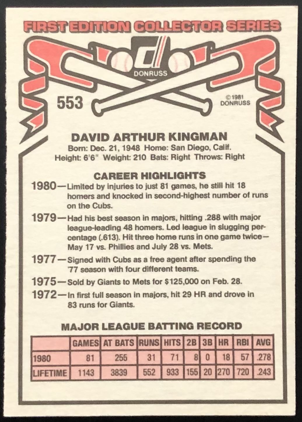 Card #553 baseball, MLB, vintage
