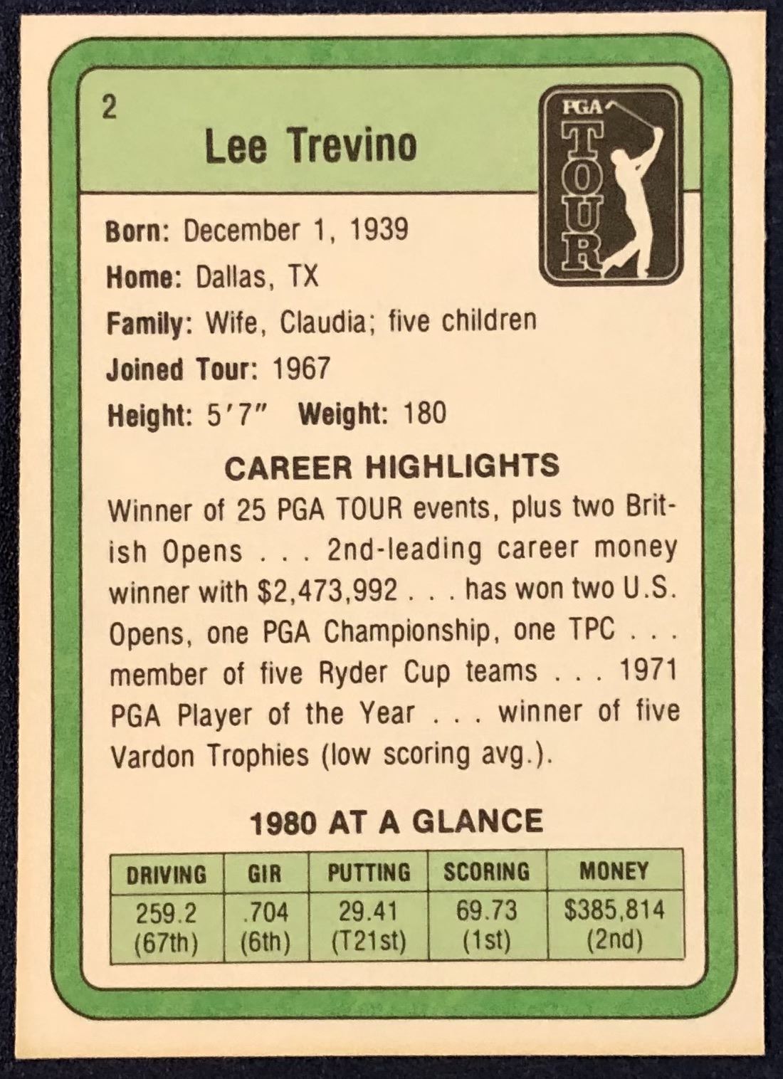 Card #2 PGA, golf, vintage, rookie