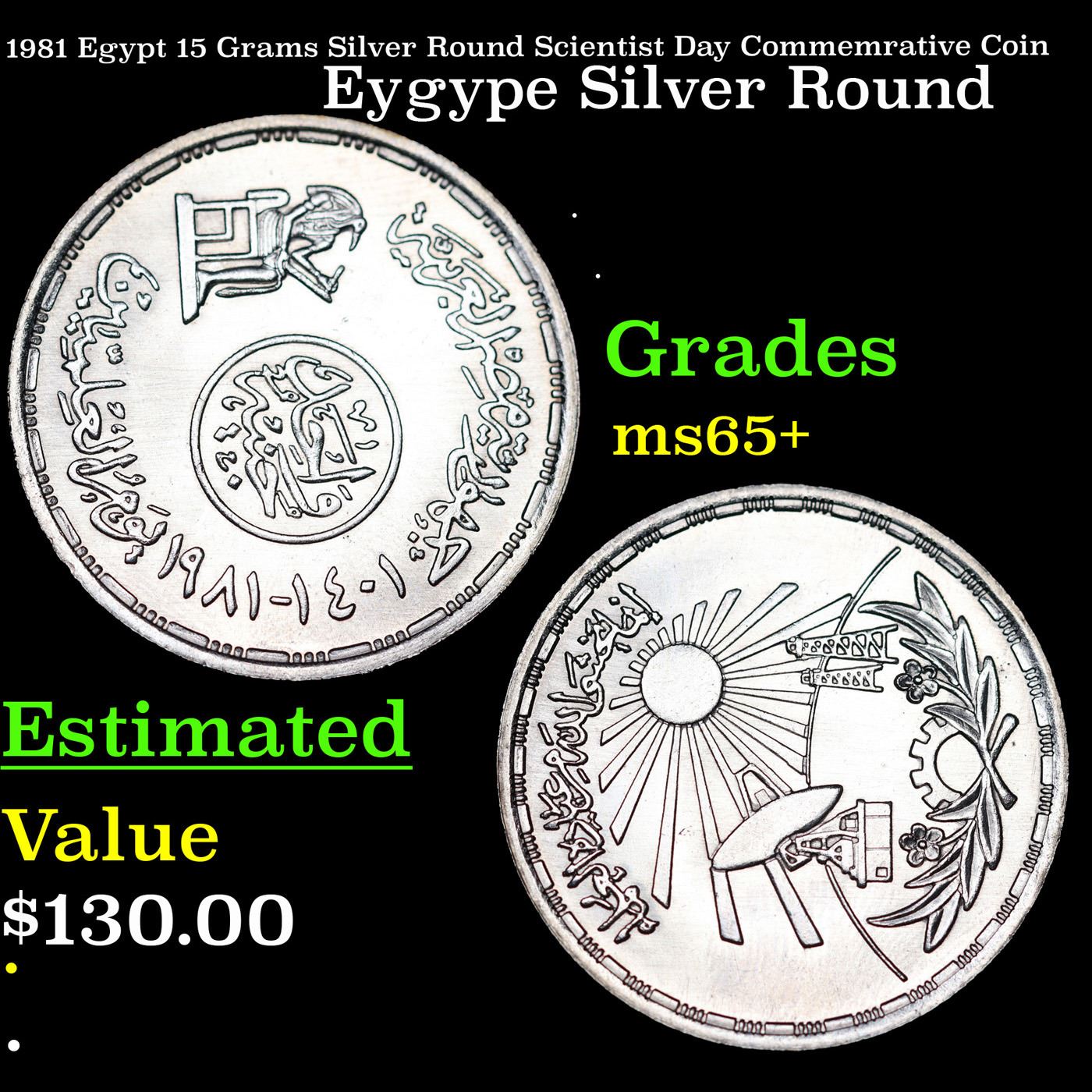 1981 Egypt 15 Grams Silver Round Scientist Day Commemrative Coin Grades GEM+ Unc.