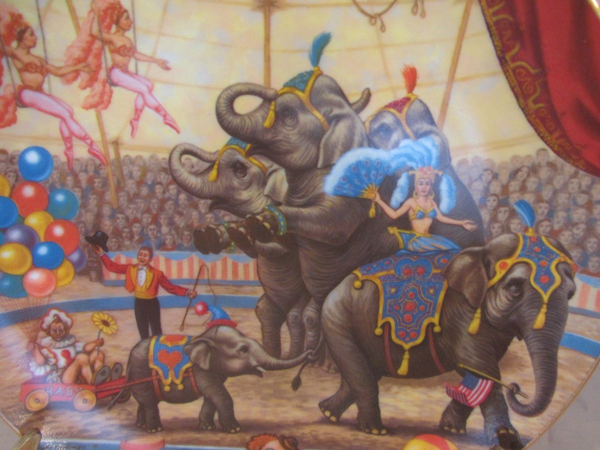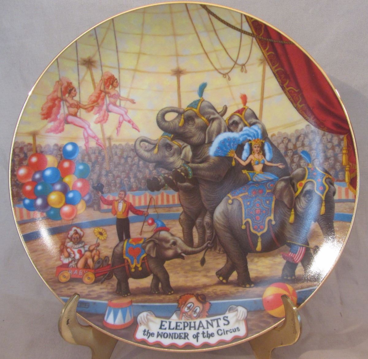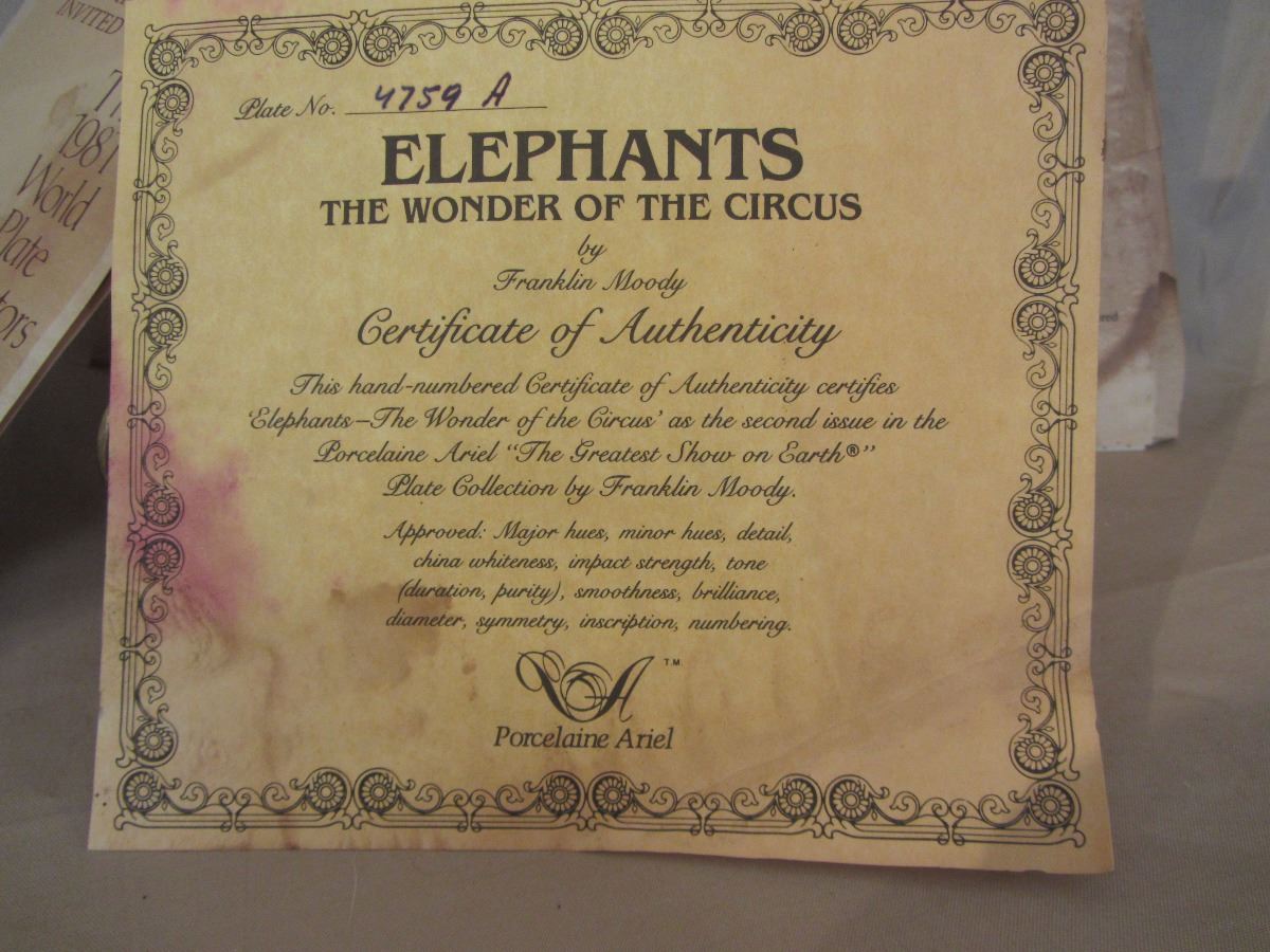 8 1/2" plate, dated 1981 'Elephants' second in the series of 'The Greatest Show on Earth' plate Collection by Franklin Moody. Plate 4759A, firing date 4-21-1981, firing master R. T. Has original paperwork with COA. (Please see images for details).