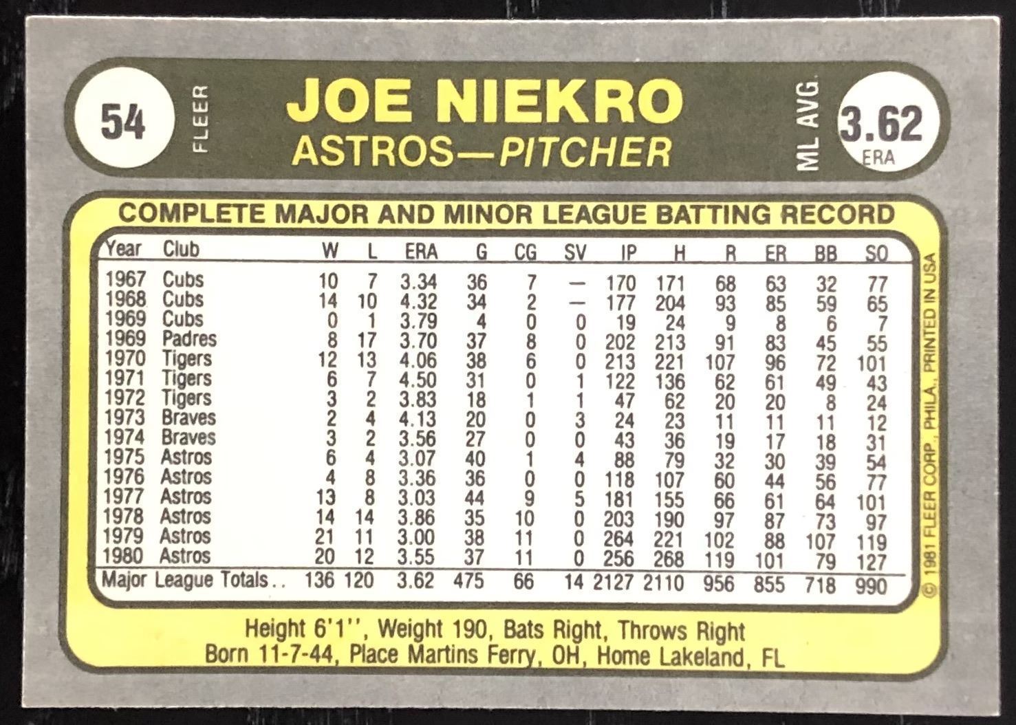 Card #54 MLB, baseball, vintage, hall of fame