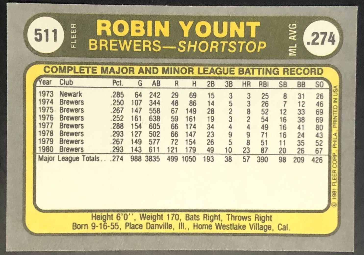 Card #511 MLB, baseball, vintage, hall of fame