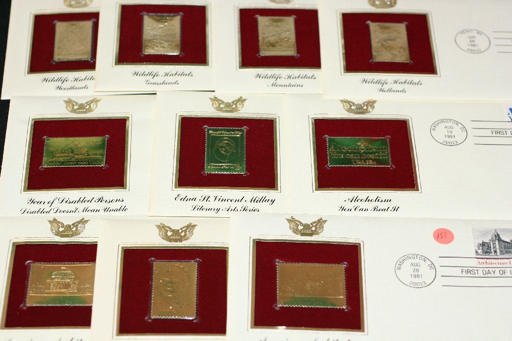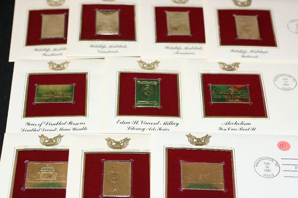 1981 First Day Issue 22K Gold Replica Stamp W/Postal Stamp; Various Events & People; Lot of 10