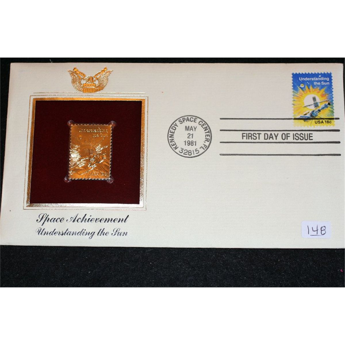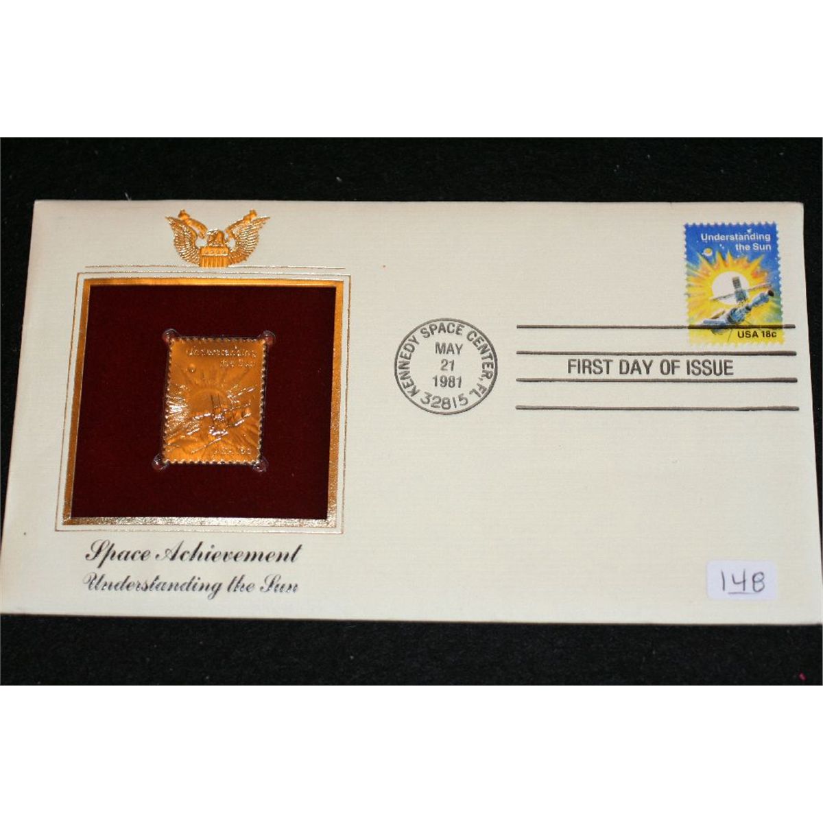 1981 First Day Issue Gold Replica stamp w/stamps, Space Achievement Understanding the Sun