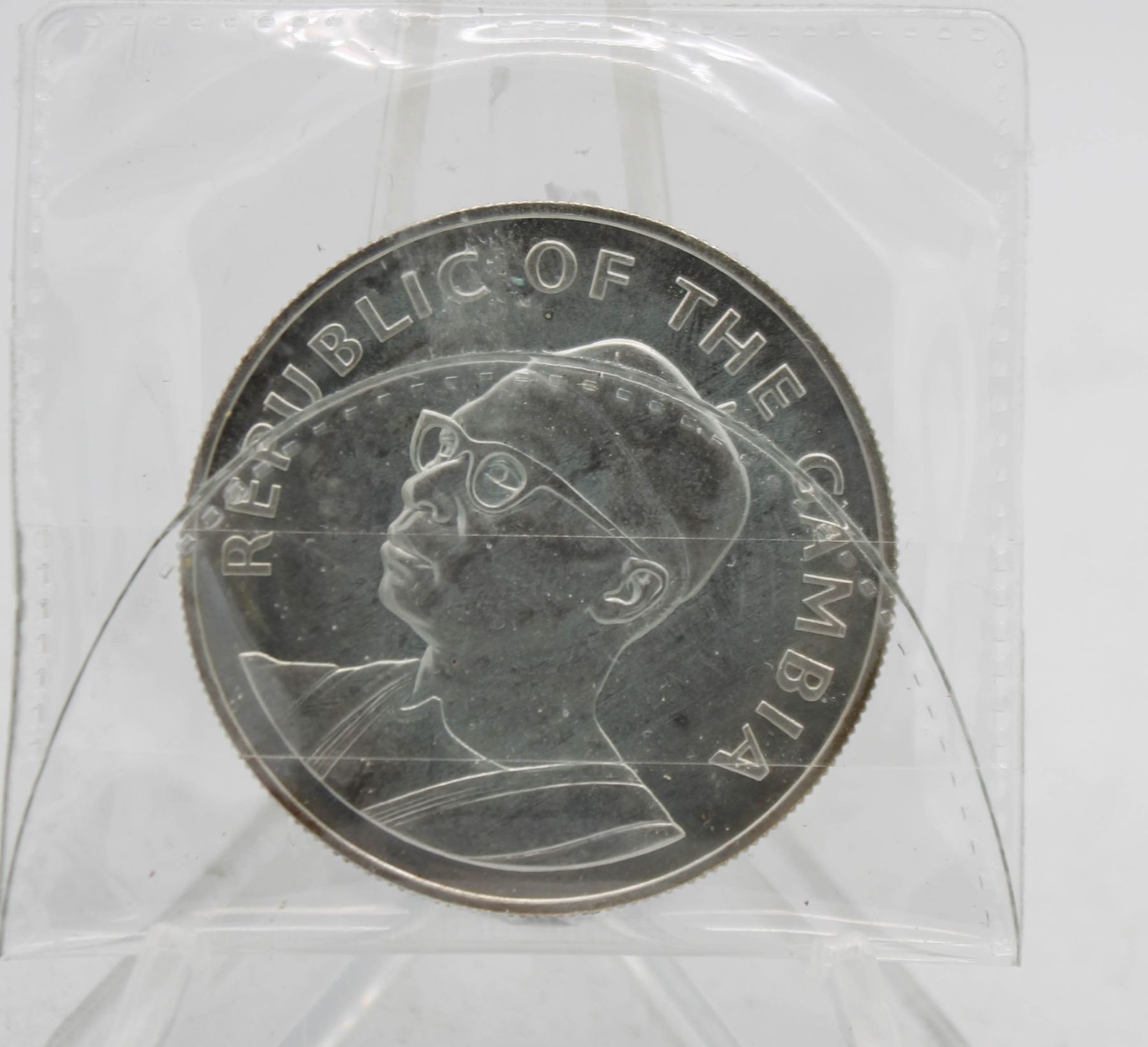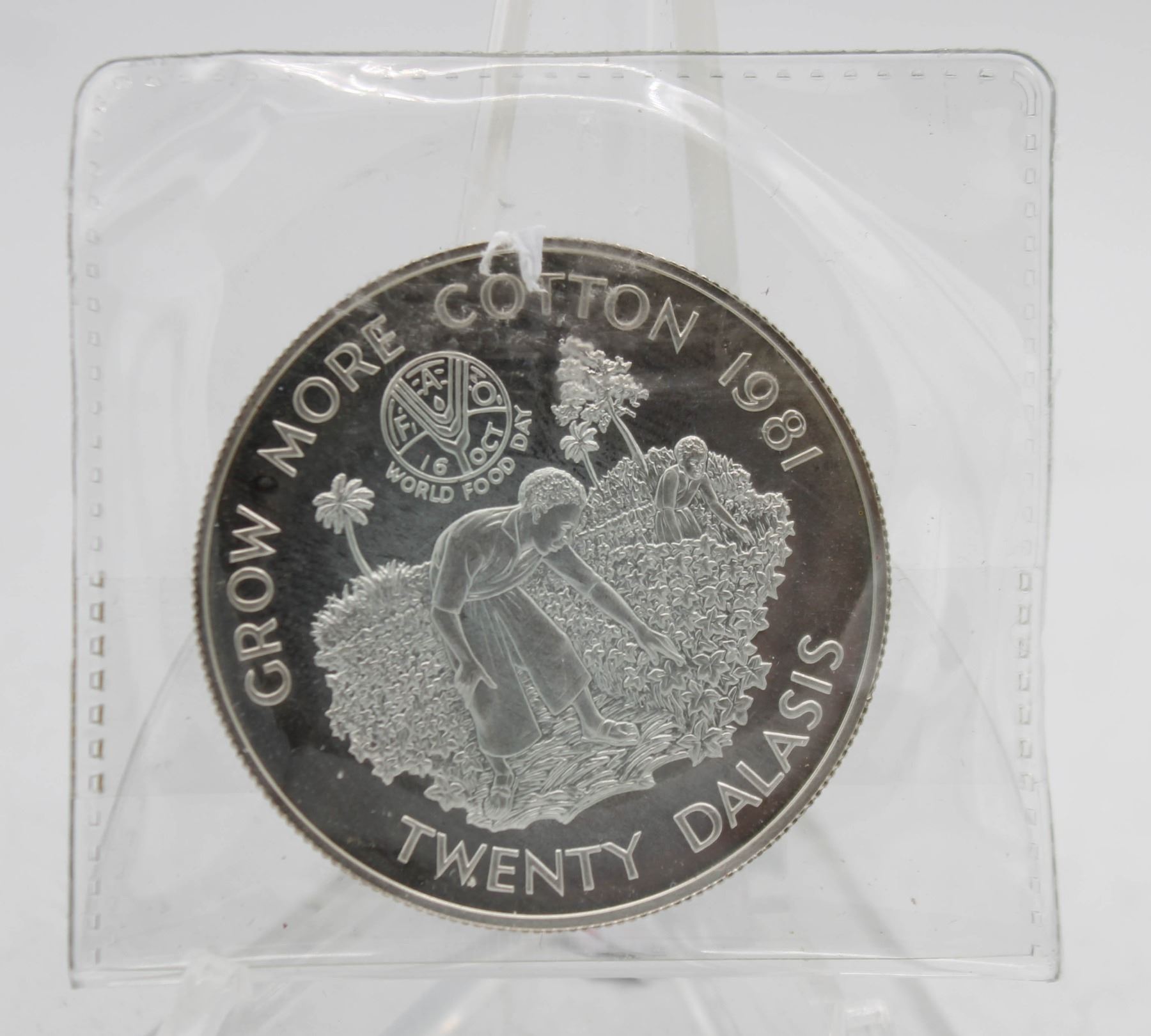 1981 GAMBIA 20 DALASIS SILVER COIN. UNC. SCARCE