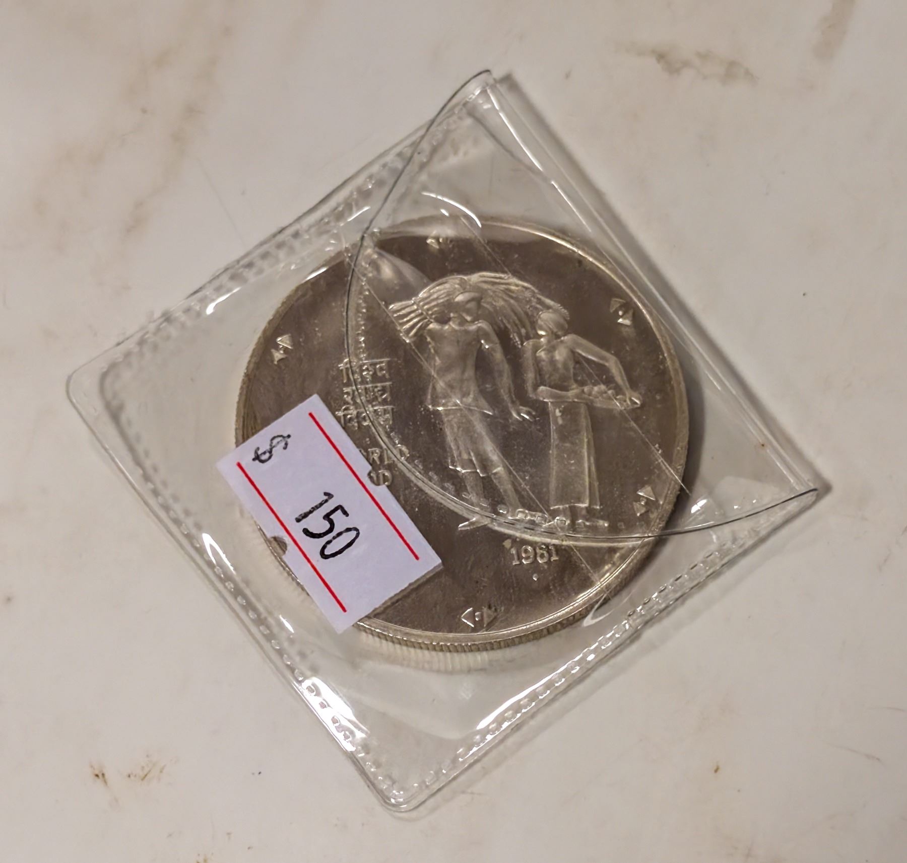 1981 INDIA 100 RUPPES SILVER COIN. SCARCE
