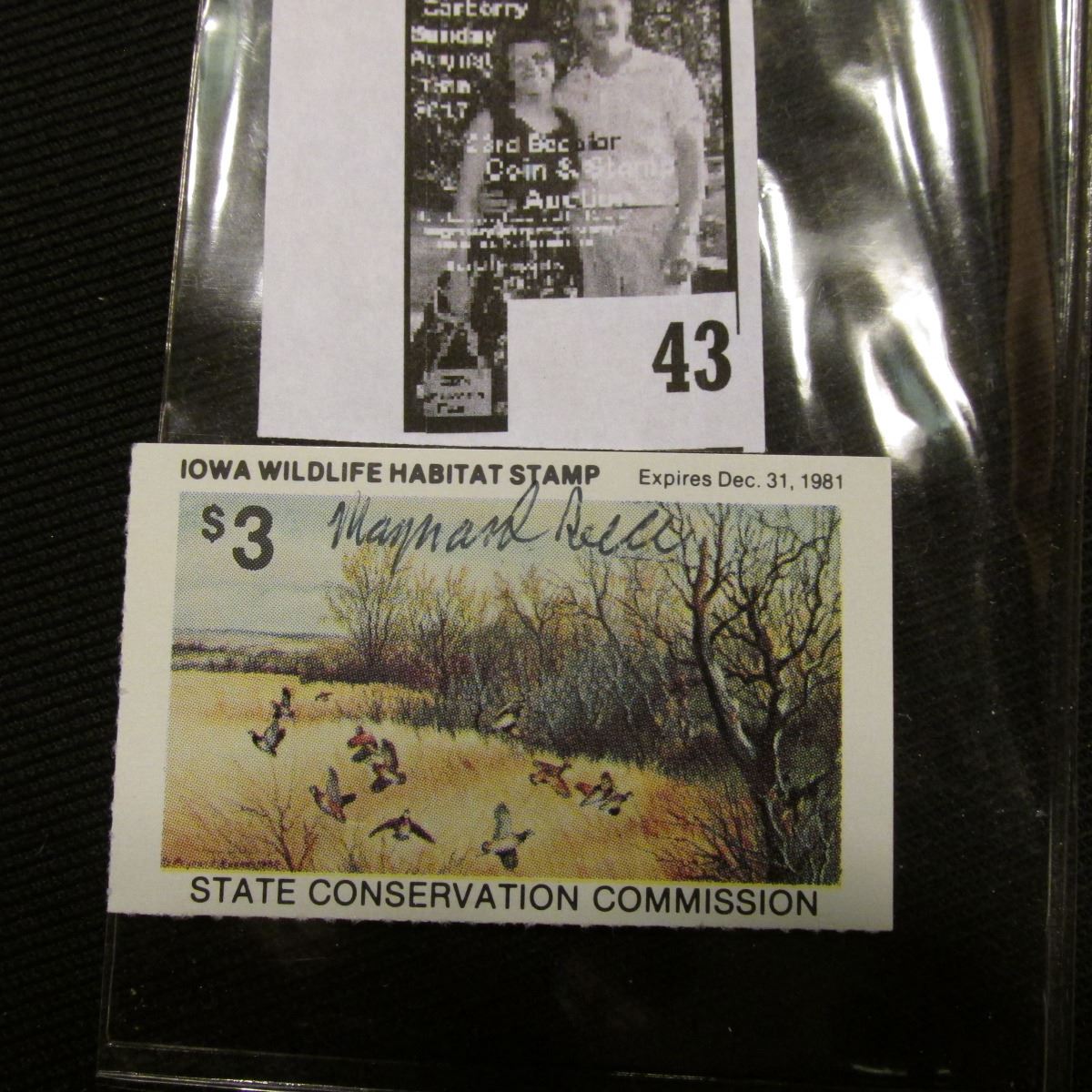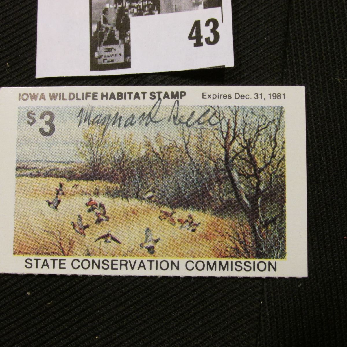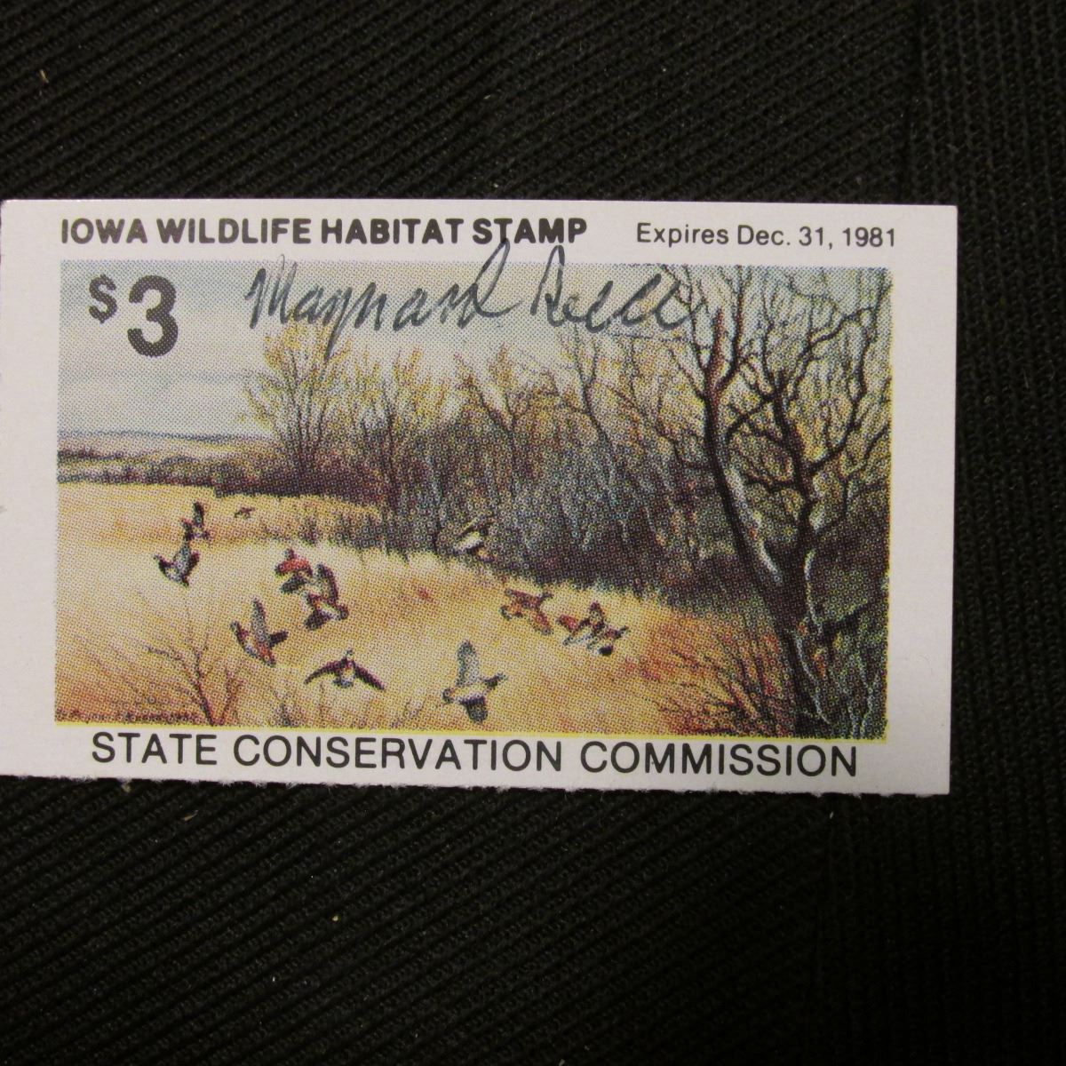 1981 Iowa State Conservation Commission Iowa Wildlife Habitat Stamp, VF, NH, Signed by the Artist "Maynard Reece".