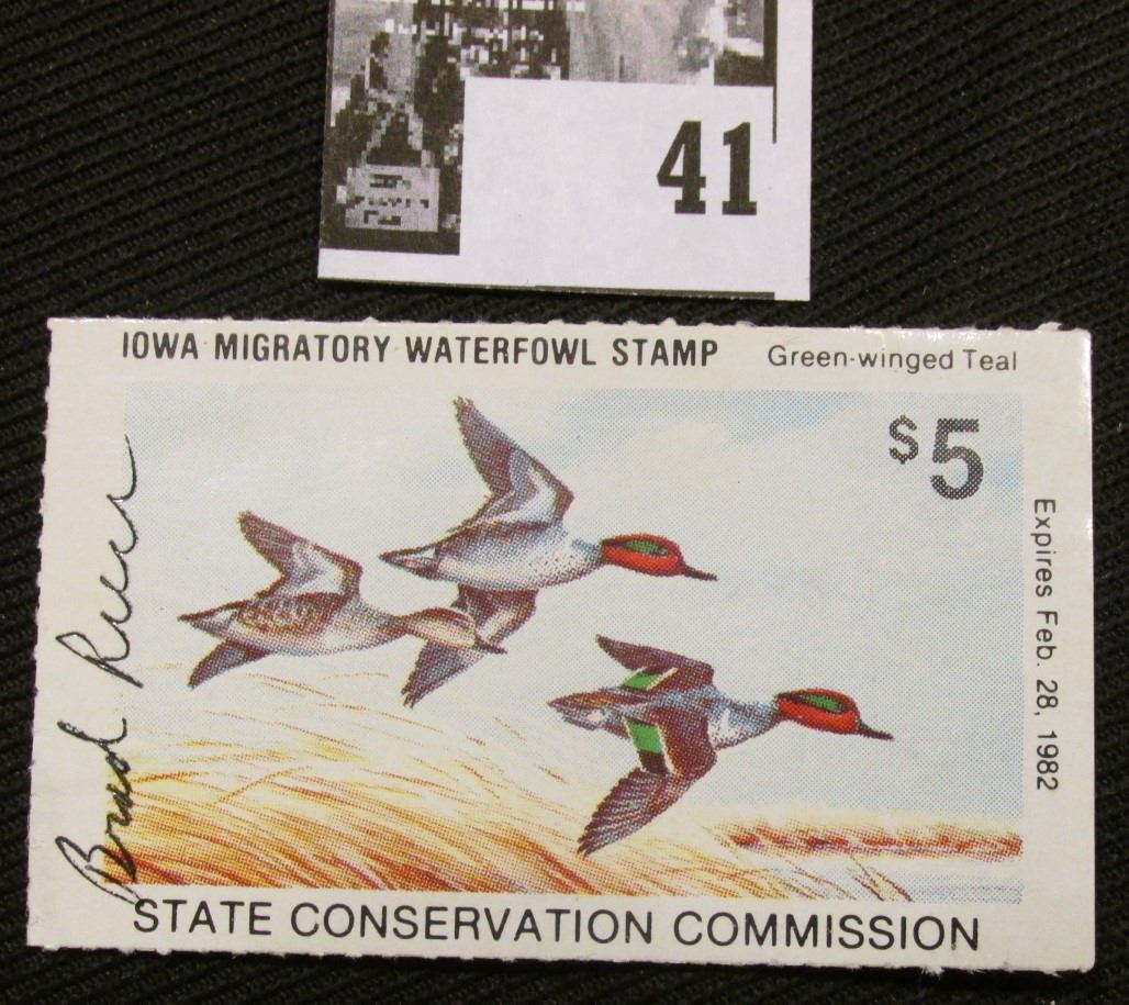 1981 Iowa State Conservation Commission Migratory Waterfowl Stamp, VF, NH, Signed by the Artist "Brad Reece". IA 10.