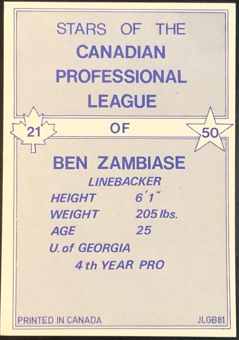 Card #21 CFL, football, vintage, hall of fame
