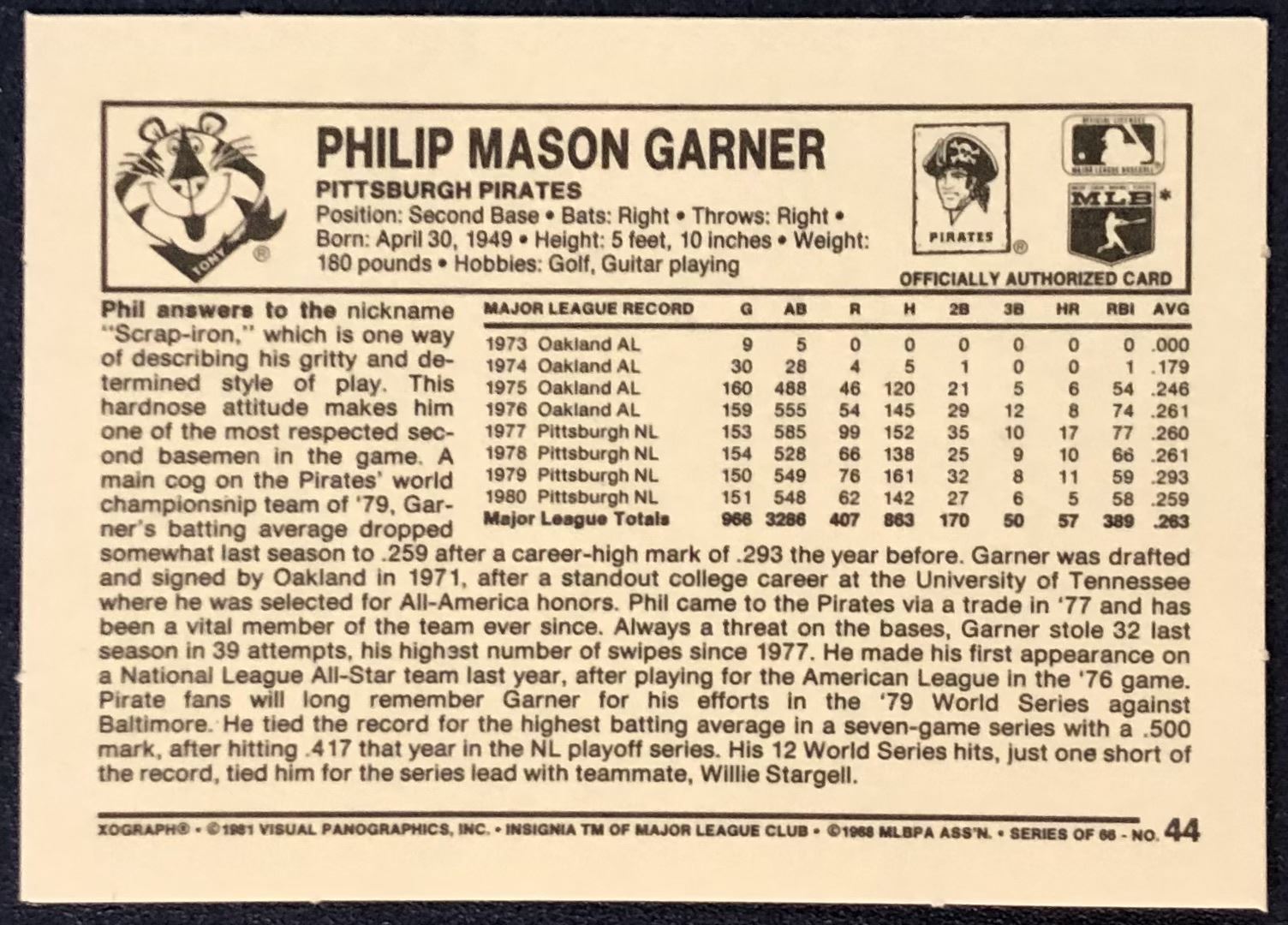 Card #44 MLB, baseball, vintage, regional