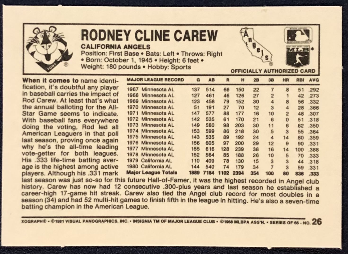 Card #26 MLB, baseball, vintage, regional, hall of fame