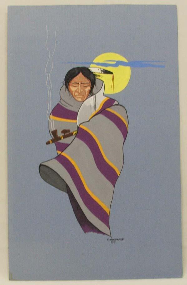 1981 Native American Painting by Woodward. Measures approx. 16'' x 10''. Titled ''Warrior and Pipe''. On artist board. Buyers Pay Actual Shipping and Handling Charges(see terms and conditions for more information).
