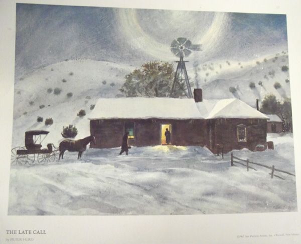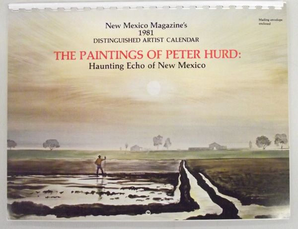1981 New Mexico Magazine Calendar of Peter Hurd. This calendar is the ''New Mexico Magazine's 1981 Distinguished Artist Calendar - The Paintings of Peter Hurd: Haunting Echo of New Mexico.'' The calendar has reproductions of 12 of Hurd's paintings and there are no marks on it. Also included are two newspaper clippings about Hurd, a small print of Hurd's painting, ''The Late Call,'' and the original envelope the calendar was mailed in. The calendar measures 9''x12''.