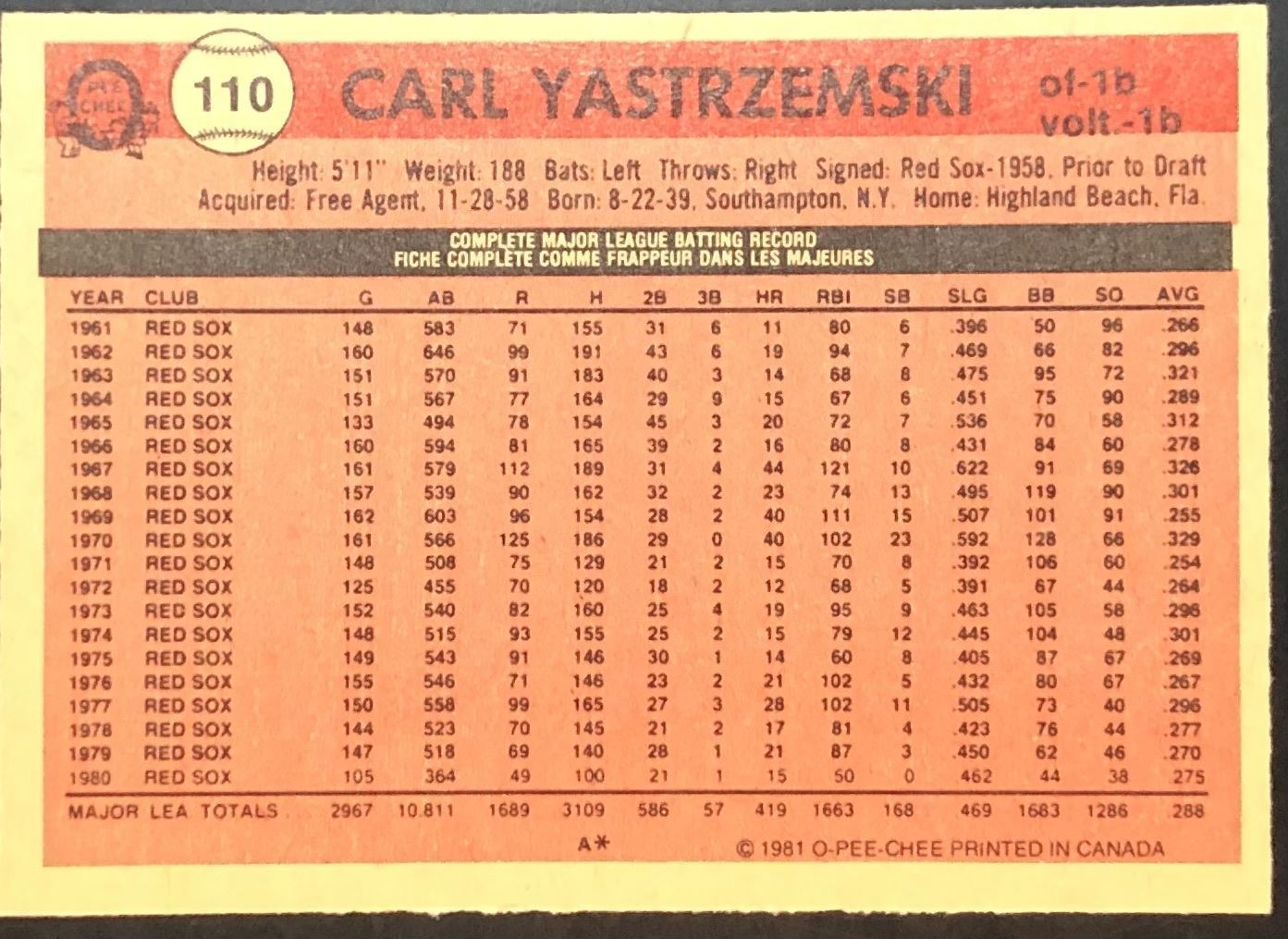 Card #110 MLB, baseball, vintage, OPC, hall of fame