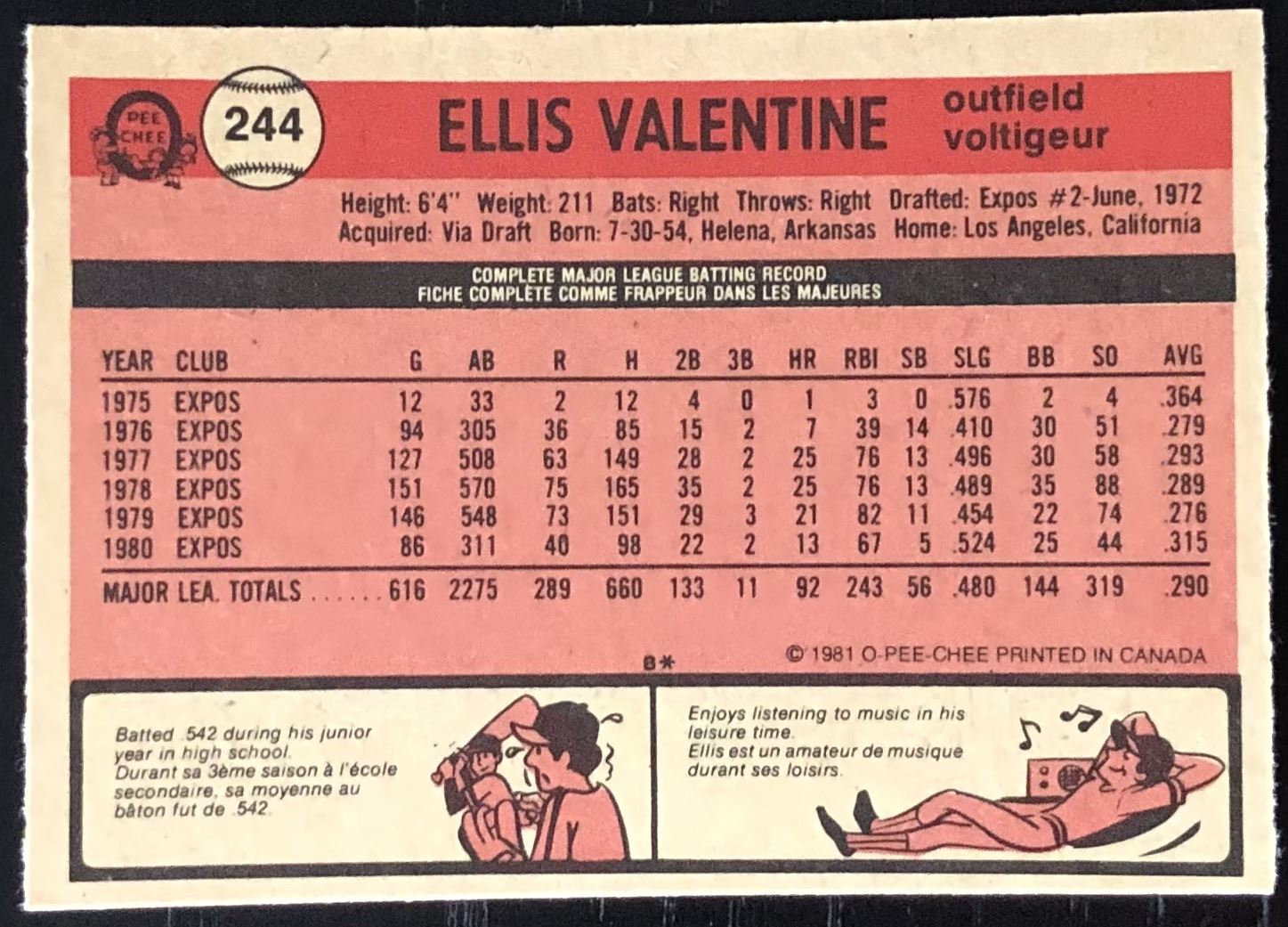 Card #244 MLB, baseball, OPC, vintage