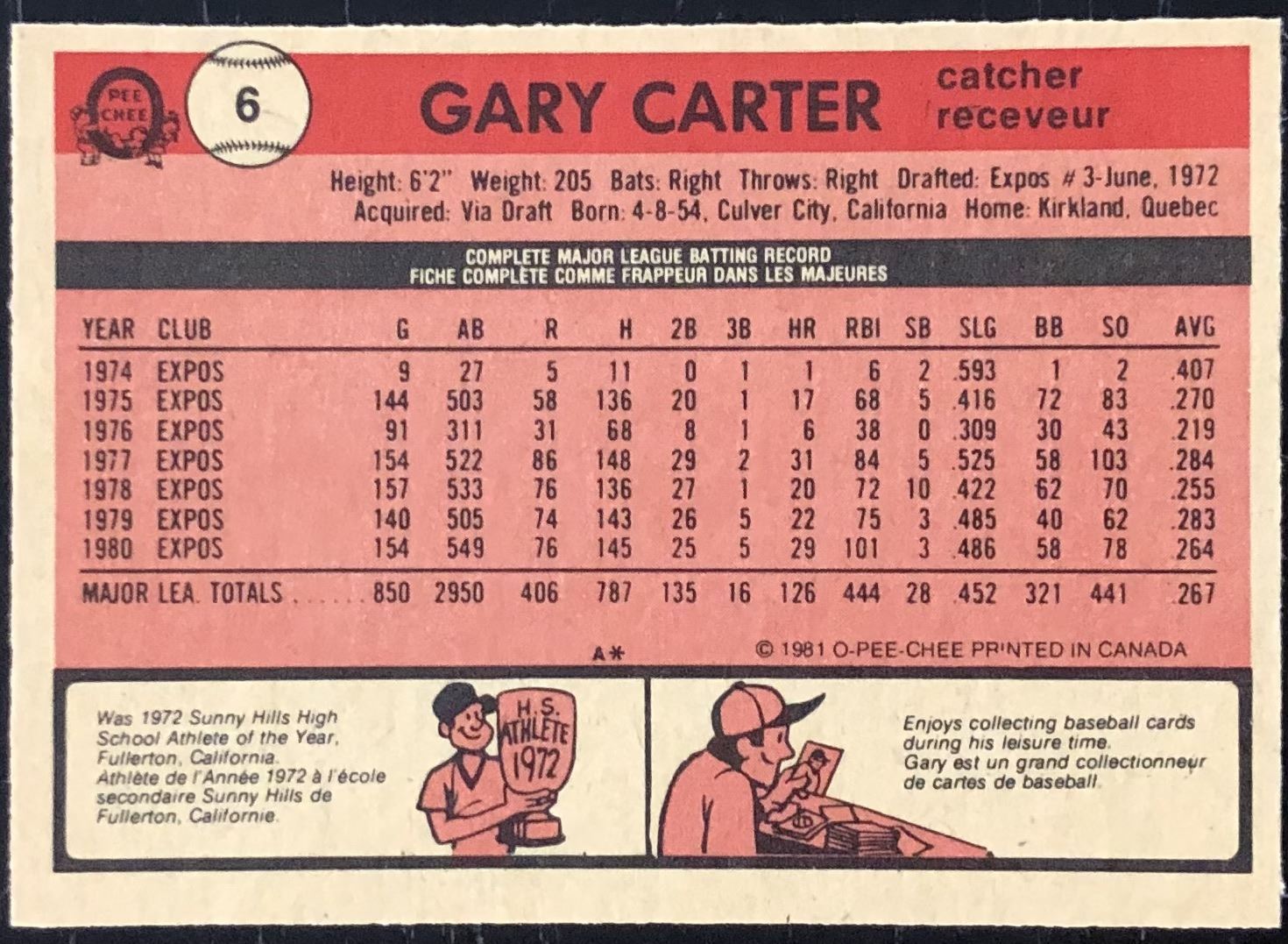 Card #6 MLB, baseball, vintage, hall of fame, OPC