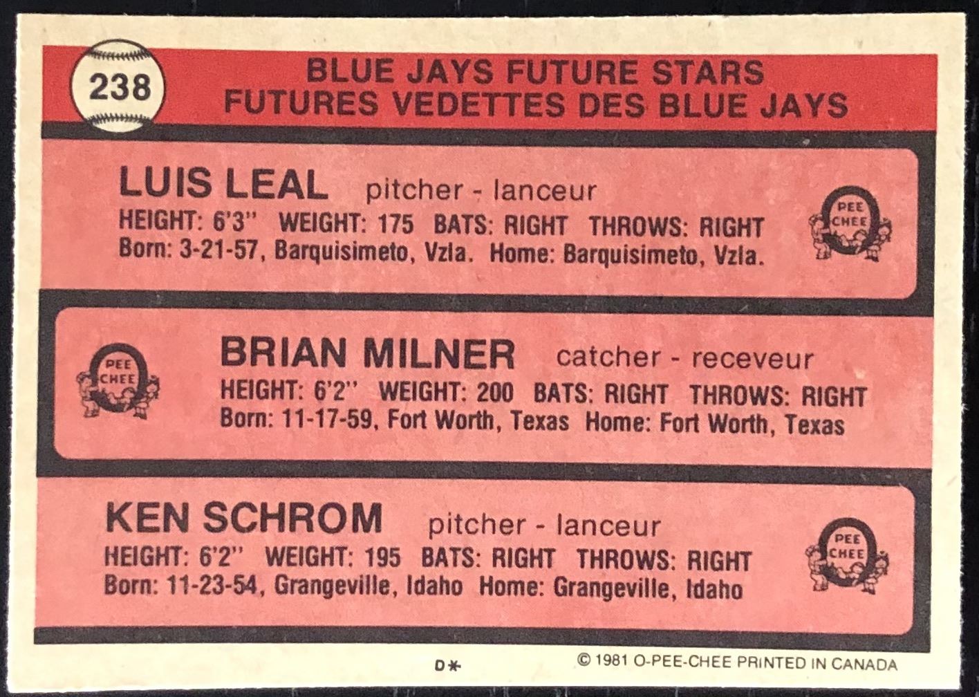 Card #238 MLB, baseball, OPC, vintage, rookie