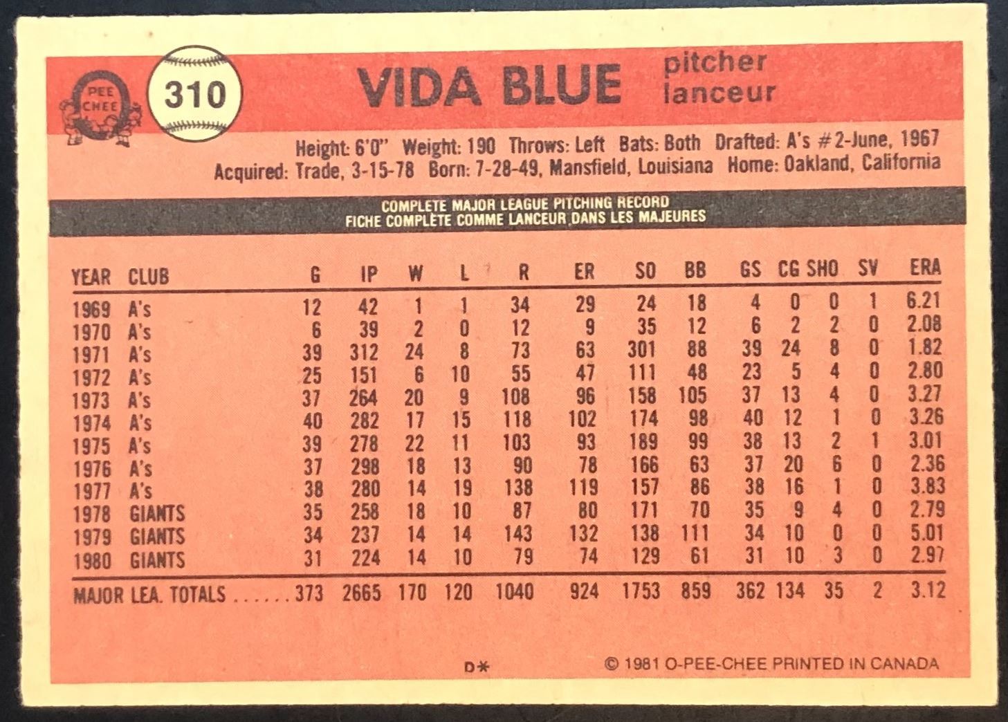 Card#310 vintage, MLB, baseball, OPC, hall of fame