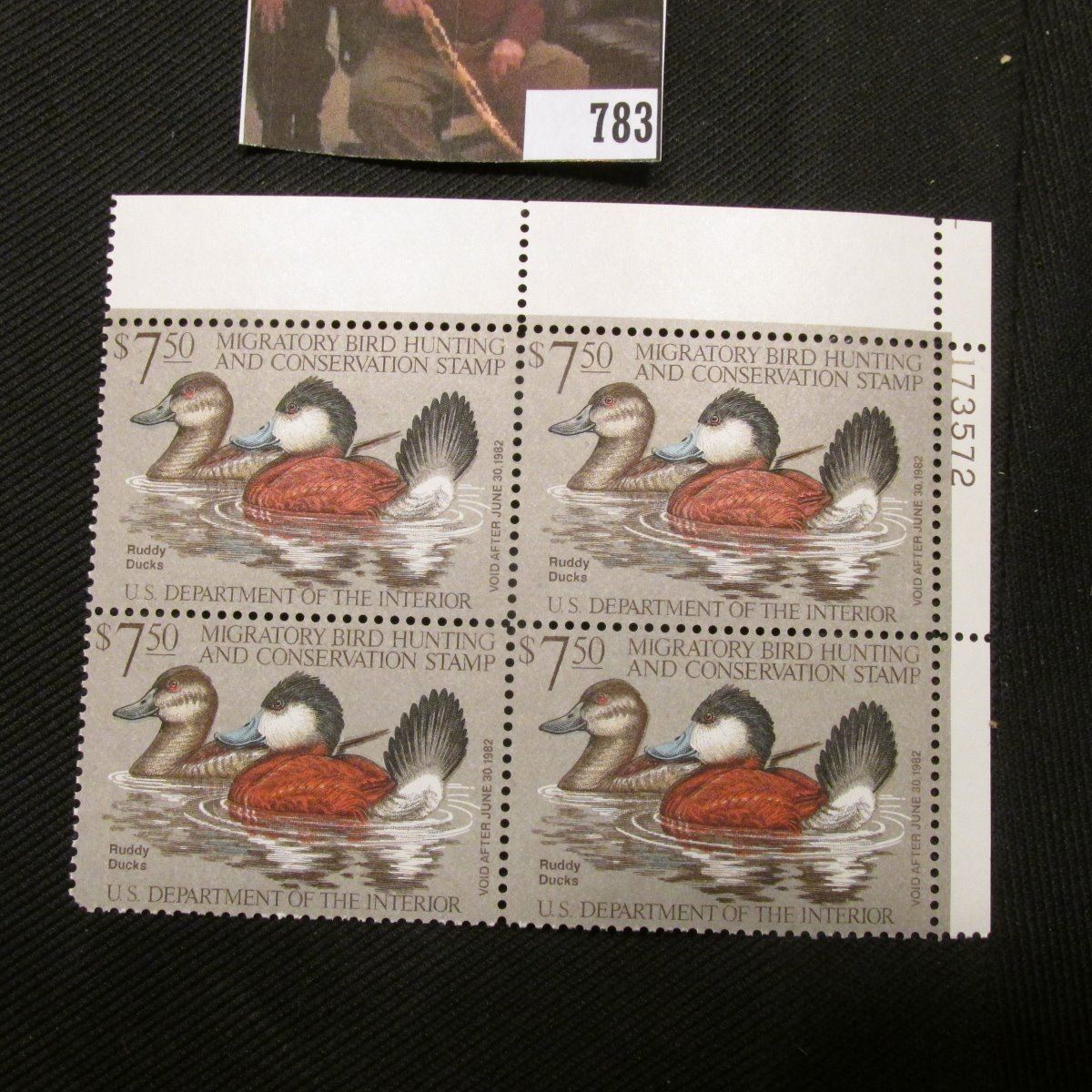 1981 Plateblock of Four RW48 $7.50 Federal Migratory Waterfowl Stamps, EF, NH,
