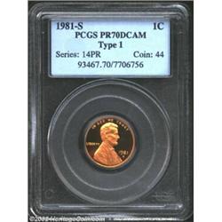 1981-S 1C Type One PR70 Deep Cameo PCGS. A needle-sharp specimen that has outstanding cameo contrast