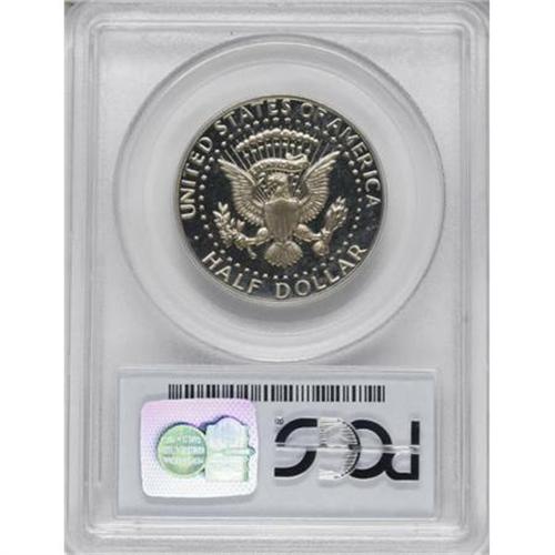 <B>1981-S 50C Type Two PR70 Deep Cameo PCGS.</B></I> The replacement mintmark punch introduced in 1979 by 1981 was itself turning out mintmarks that, according to Breen, yielded "S's like 8's," and a second new punch was made that featured an "open S with round serifs free of middle stroke." These later Type Two S-mintmarked Kennedys apparently constitute about one-tenth the number of Type One pieces produced. PCGS as of (10/07) has certified only 24 pieces in PR70 Deep Cameo. The looking-glass fields are well-mirrored, and the devices drip with icy mint frost on the present piece. A light wash of golden color extends from the center of Kennedy's cheek into the left obverse field; otherwise there is little evidence of color.<BR><I>From The Kallenberg #1 PCGS Registry Set Of Proof Half Dollars.</B></I><BR><BR><b>Shipping:</b> Coins & Currency (<a target="_blank" href="http://www.heritageauctions.com/common/shipping.php">view shipping information</a>)