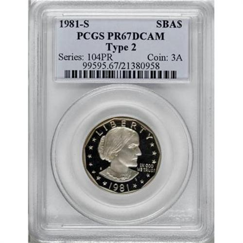 <B>1981-S SBA$ Type Two PR67 Deep Cameo PCGS.</B></I> PCGS Population (230/2327). NGC Census: (60/874). Numismedia Wsl. Price for NGC/PCGS coin in PR67: $184. (#99595)<BR><BR><b>Shipping:</b> Coins & Currency (<a target="_blank" href="http://www.heritageauctions.com/common/shipping.php">view shipping information</a>)