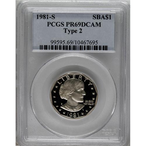 <B>1981-S SBA$ Type Two PR69 Deep Cameo PCGS.</B></I> PCGS Population (1224/40). NGC Census: (467/5). Numismedia Wsl. Price: $235. (#99595)<BR><BR><b>Shipping:</b> Coins & Currency (<a target="_blank" href="http://www.heritageauctions.com/common/shipping.php">view shipping information</a>)