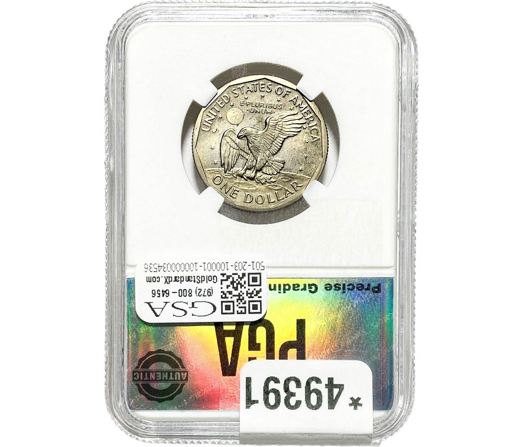 e. Coins sold referencing a third-party grading service are sold “AS IS” without any express or implied warranty, except for a guarantee by GSA that they are genuine. Removal or alteration of the holder, voids all of Bidder’s claims concerning that Product. Certain warranties may be available from the grading services and Bidders are referred to them for further details: Numismatic Guaranty Corporation (NGC), PO Box 4776, Sarasota, FL 34230, www.ngccoin.com/services/writtenguarantee.asp; Professional Coin Grading Services (PCGS), PO Box 9458, Newport Beach, CA 92658, www.pcgs.com/guarantee.html; ANACS, 6555 S. Kenton St., Ste. 303, Englewood, CO 80111; and Independent Coin Grading Co. (ICG), 7901 East Bellview, Ave., Suite 50, Englewood, CO 80111.