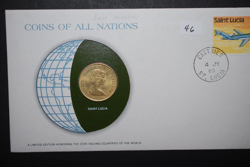 1981 Saint Lucia $1 Coin With COA Included; Coins Of All Nations With Postal Stamp Postmarked 1983; EST. $5-10