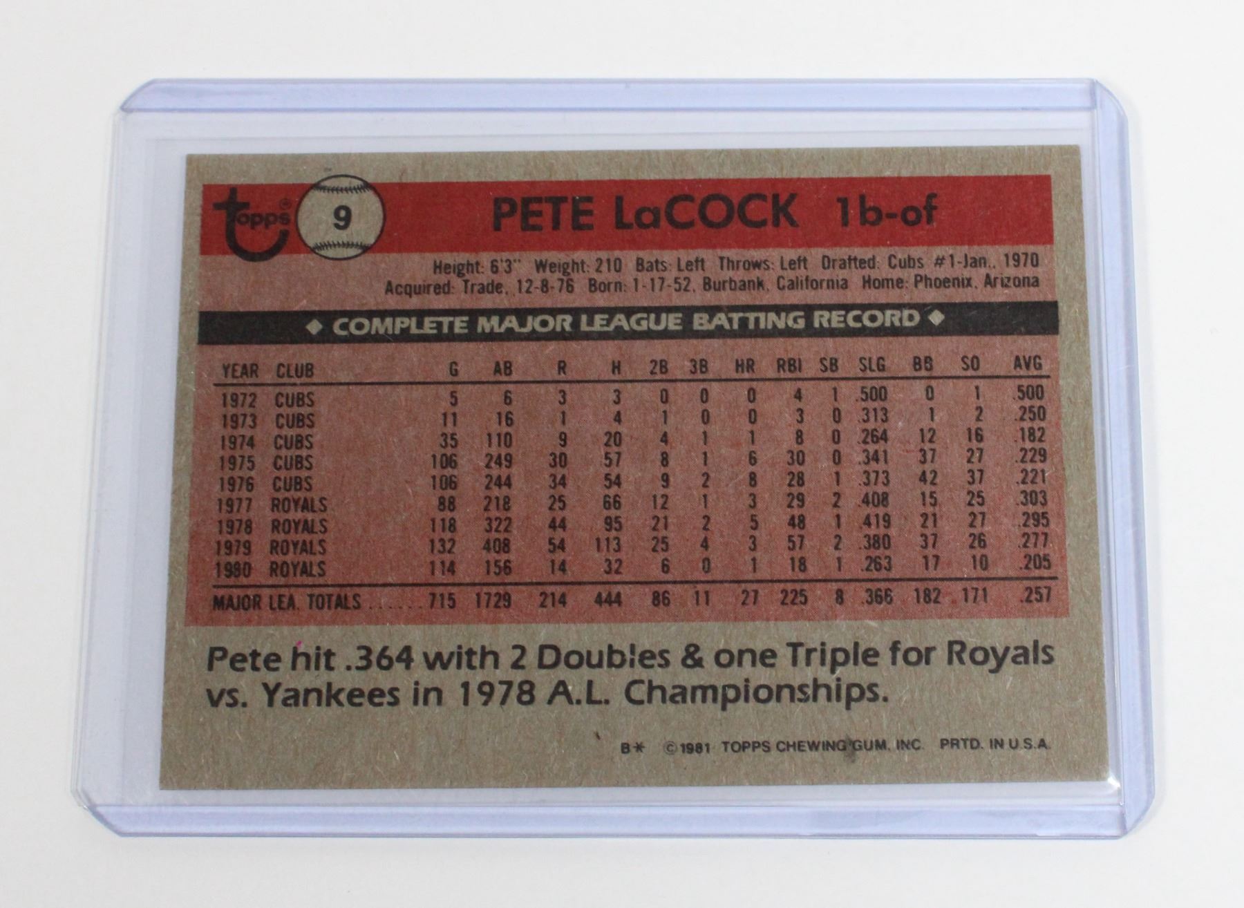 1981 TOPPS #9 PETE LACOCK KANSAS CITY ROYALS 1B-OF