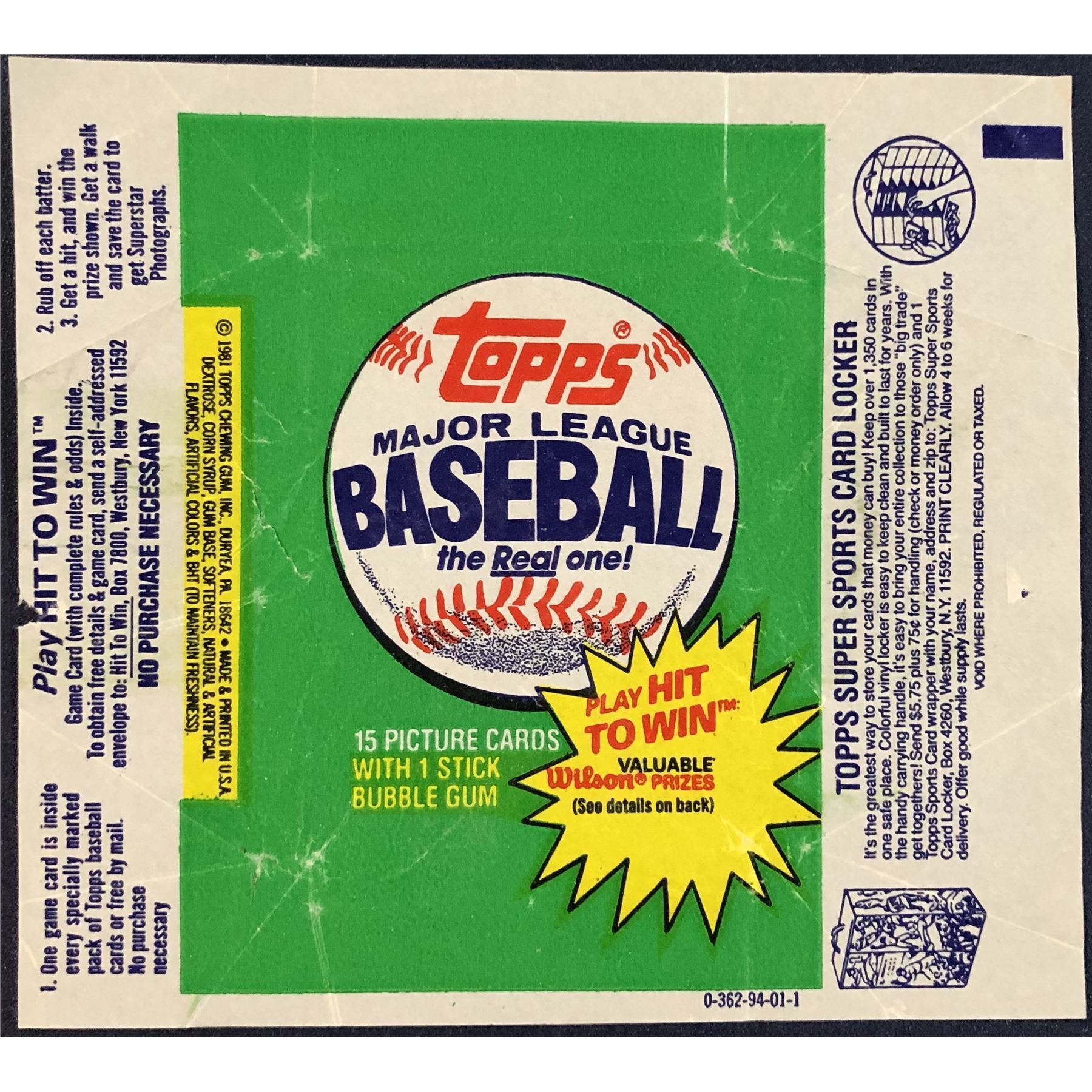 1981 TOPPS BASEBALL WRAPPER