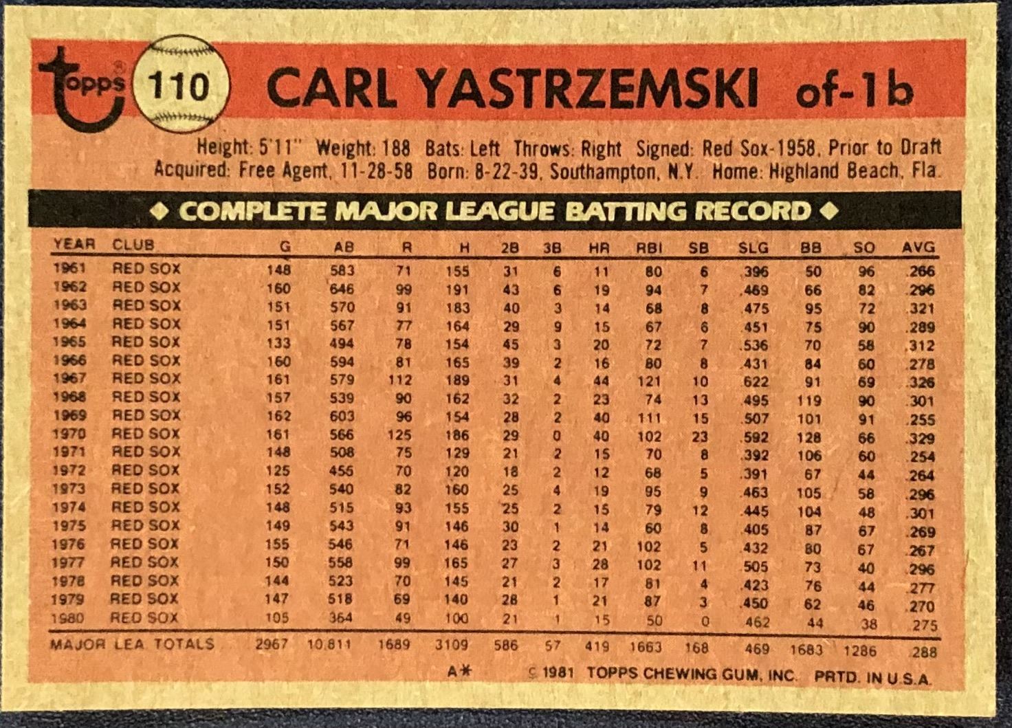 Card #110 MLB, baseball, vintage, hall of fame