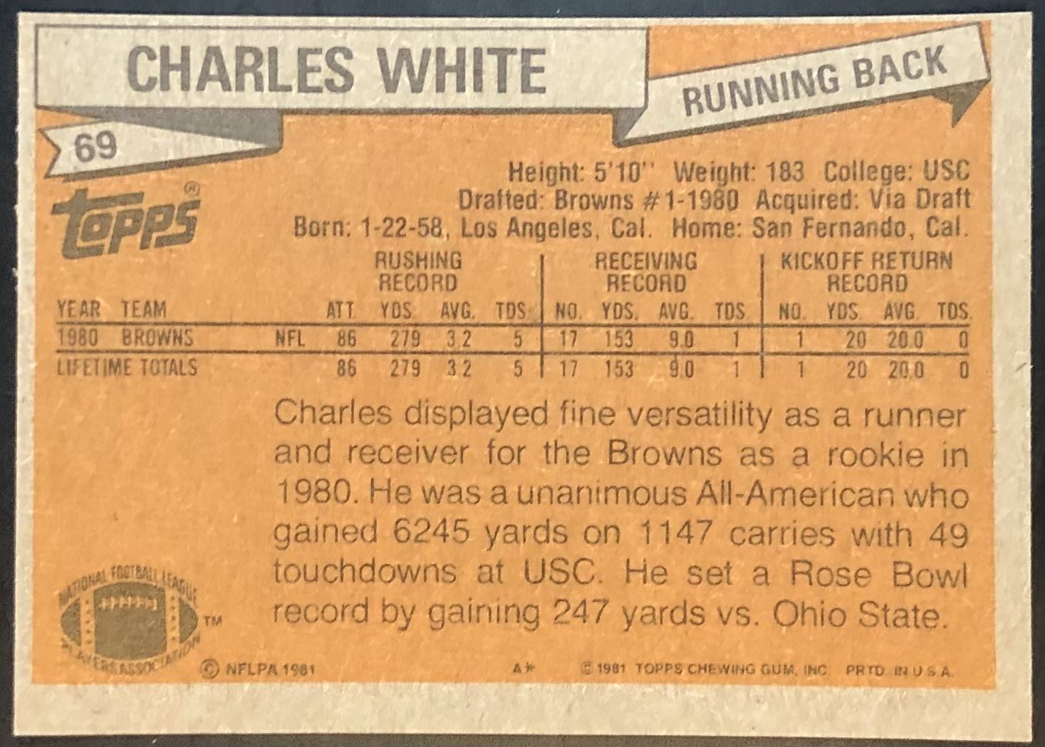 Card #69 NFL, football, vintage, rookie