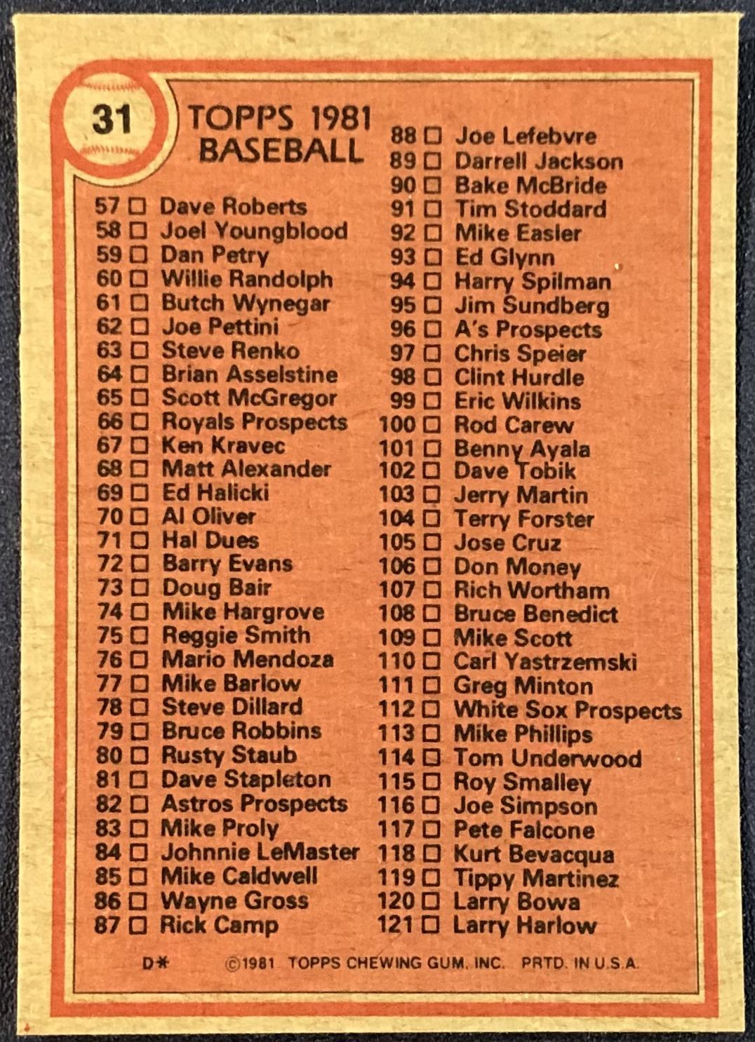 Card #31 MLB, baseball, vintage