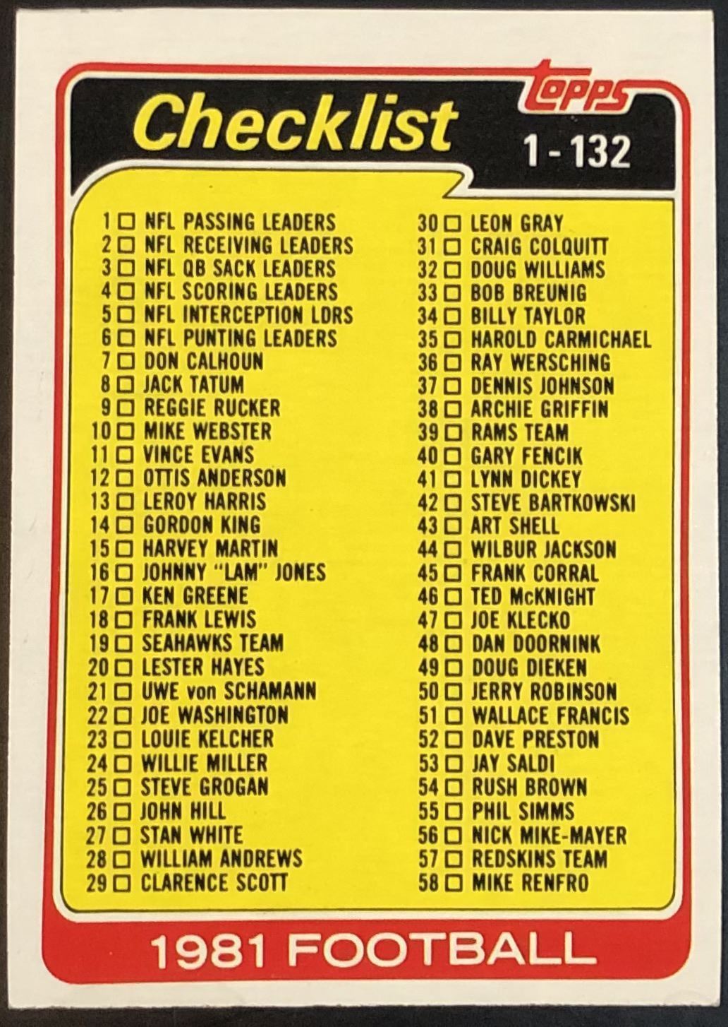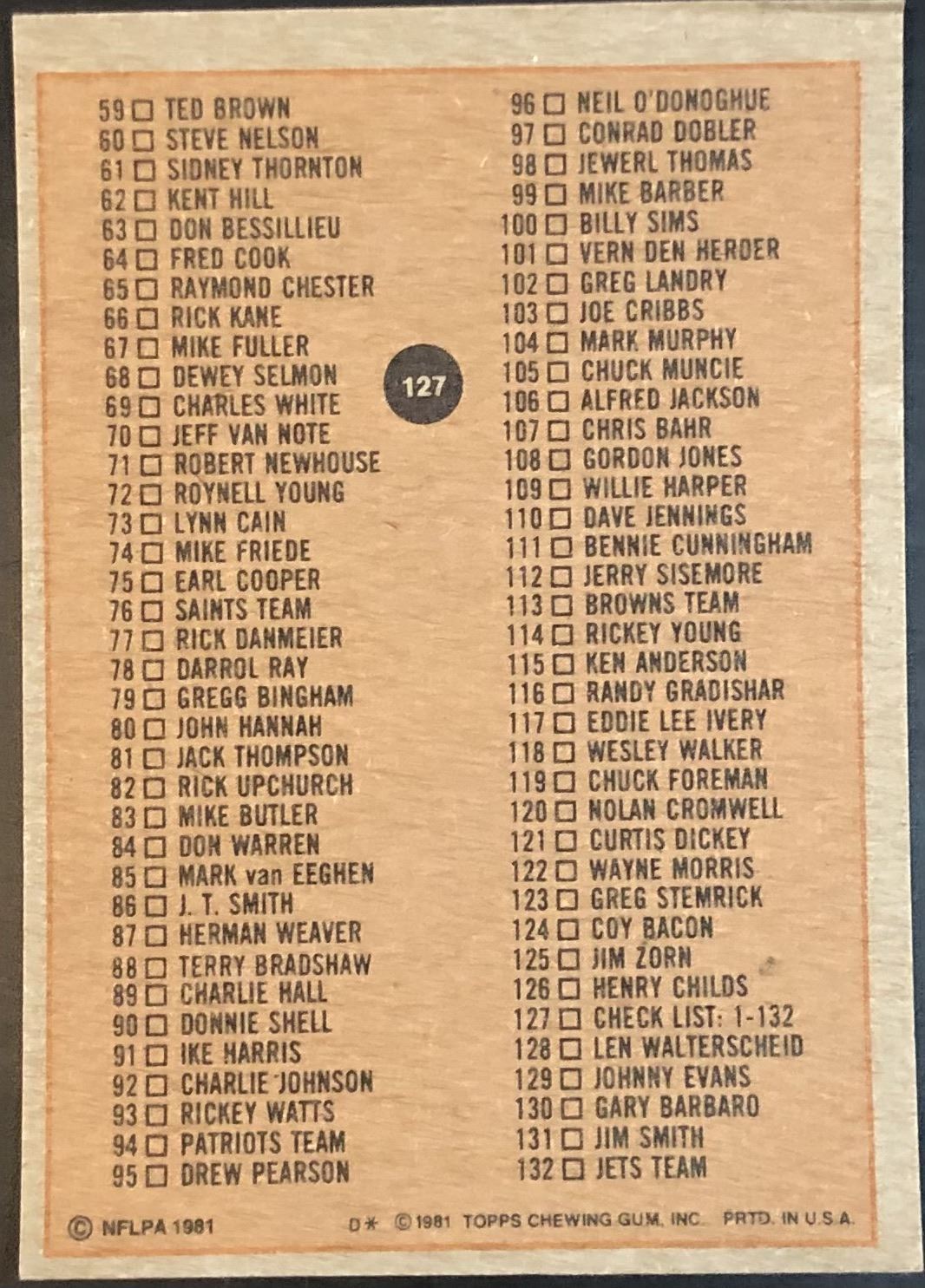 Card #127 NFL, football, vintage