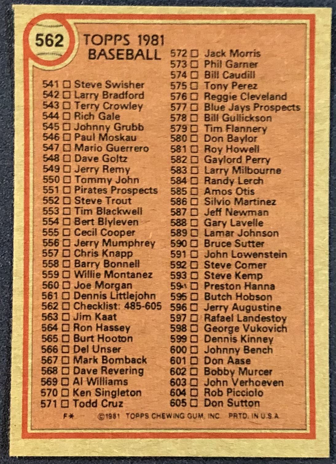 Card #562 MLB, baseball, vintage