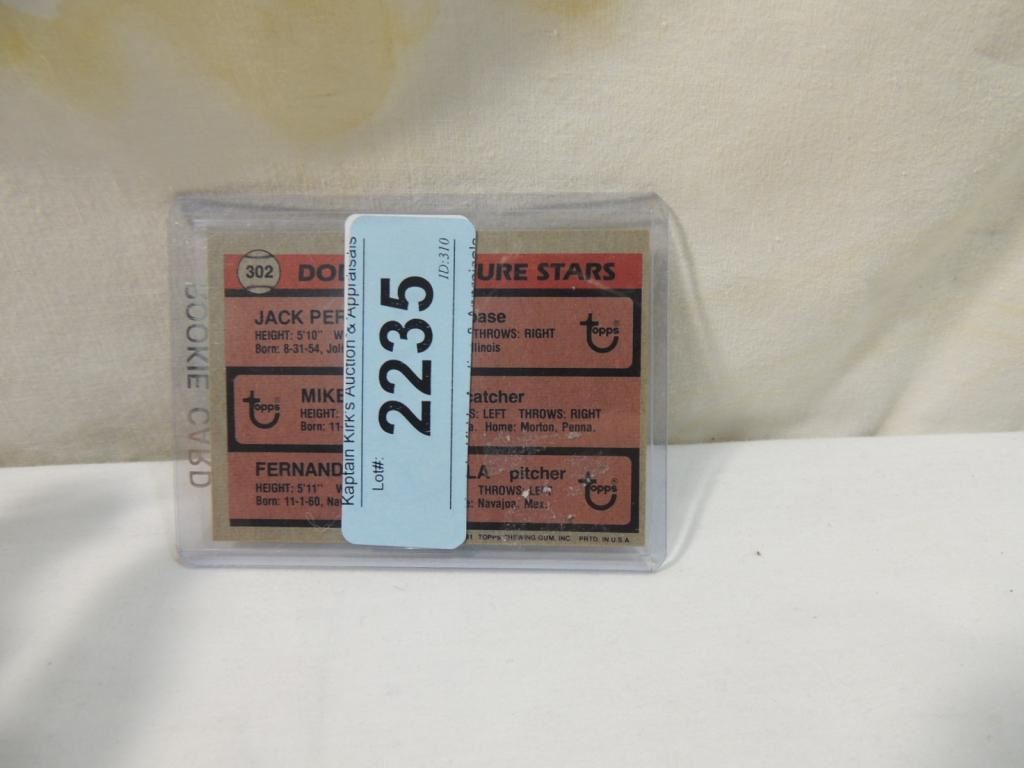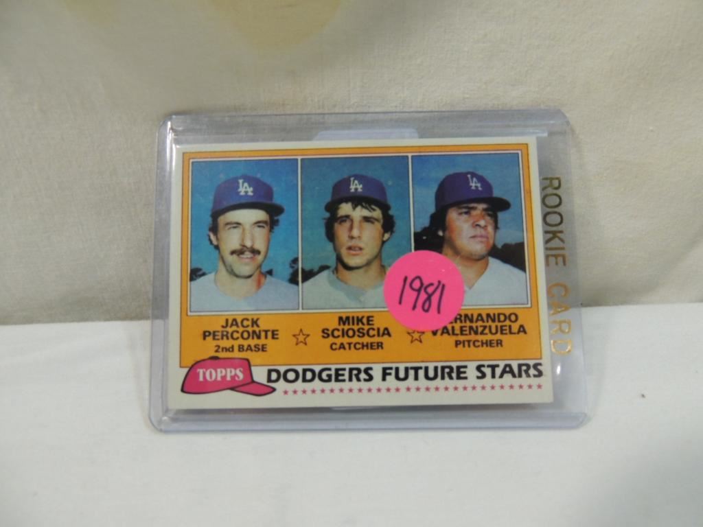 JACK PERCONTE, MIKE SCIOSCIA, FERNANDO VALENZUELA BASEBALL PLAYER CARDS. TRADING CARDS. COLLECTIBLE. BASEBALL MEMORABILIA. GOOD CONDITION AS SHOWN. SEE PHOTO FOR MORE DETAILS.