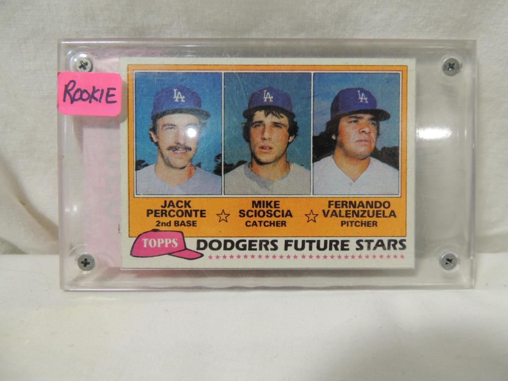 JACK PERCONTE, MIKE SCIOSCIA, FERNANDO VALENZUELA BASEBALL PLAYER CARDS. TRADING CARDS. COLLECTIBLE. BASEBALL MEMORABILIA. GOOD CONDITION AS SHOWN. SEE PHOTO FOR MORE DETAILS.