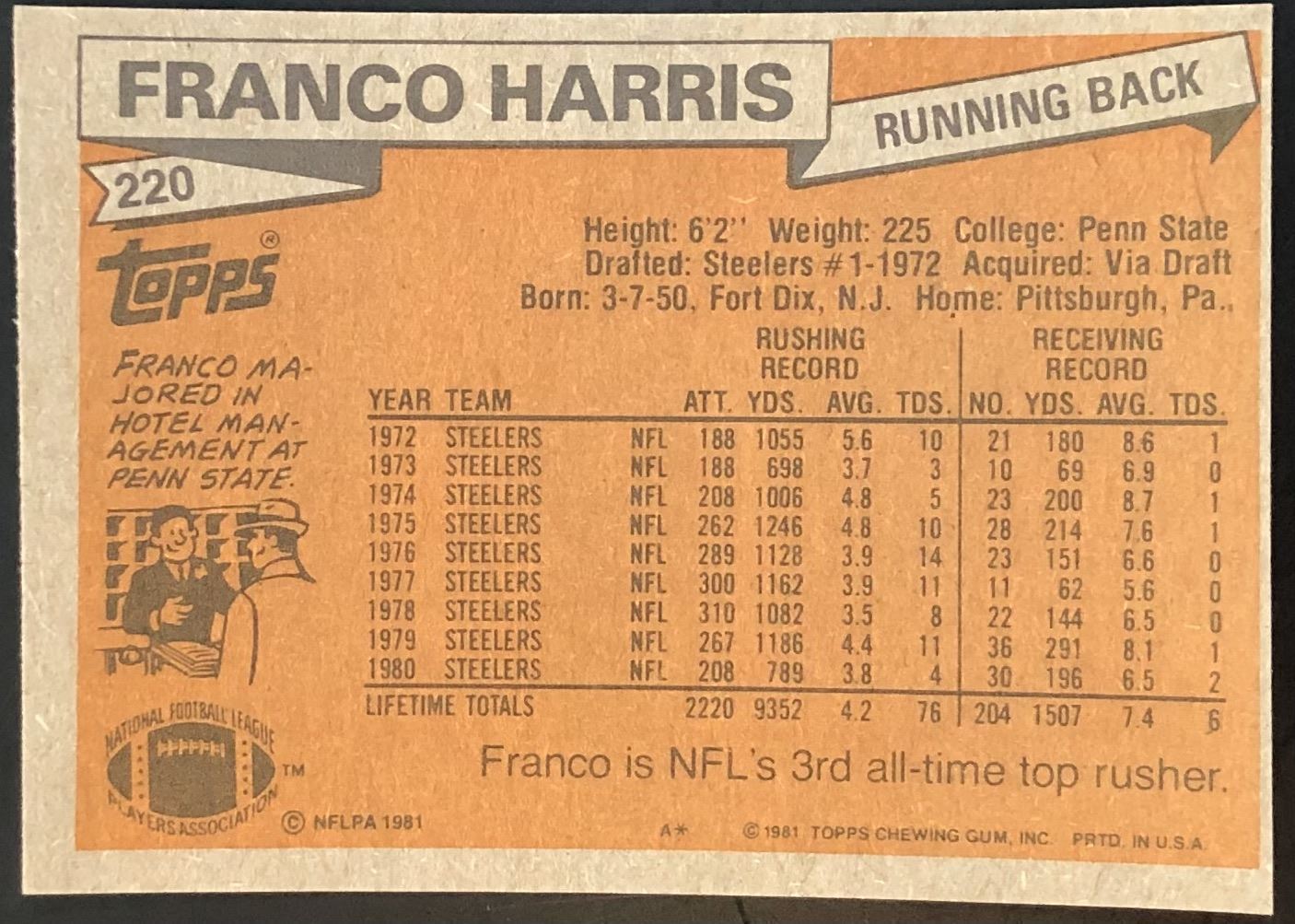 Card #220 NFL, football, vintage, hall of fame