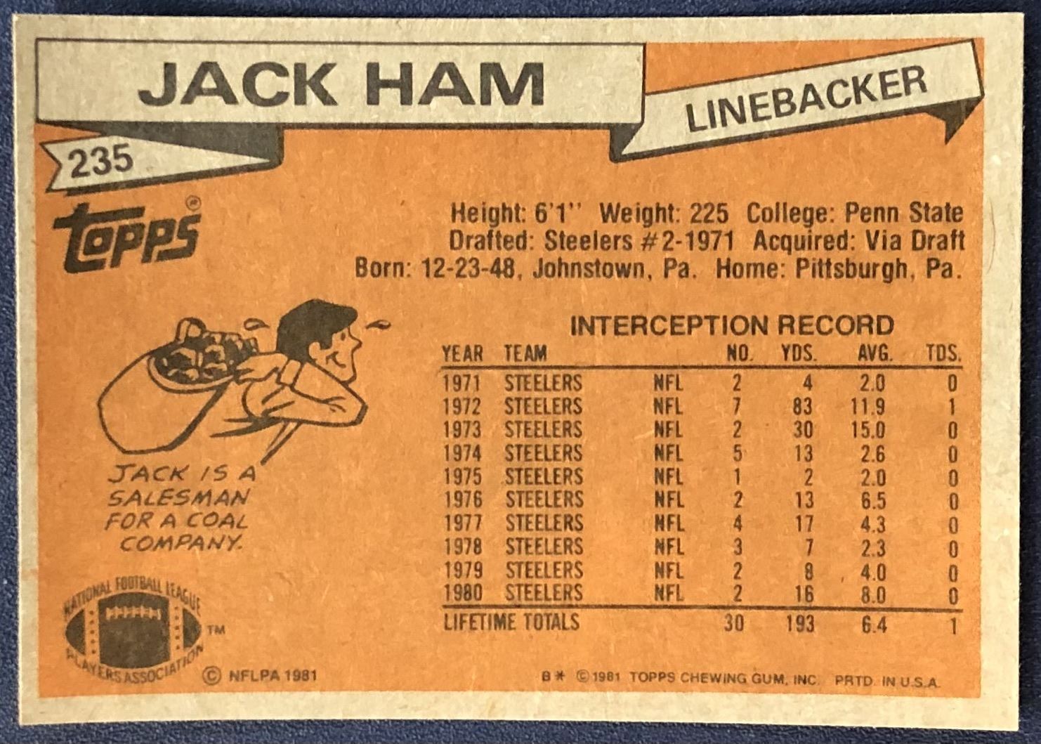 Card #235 NFL, football, vintage, hall of fame