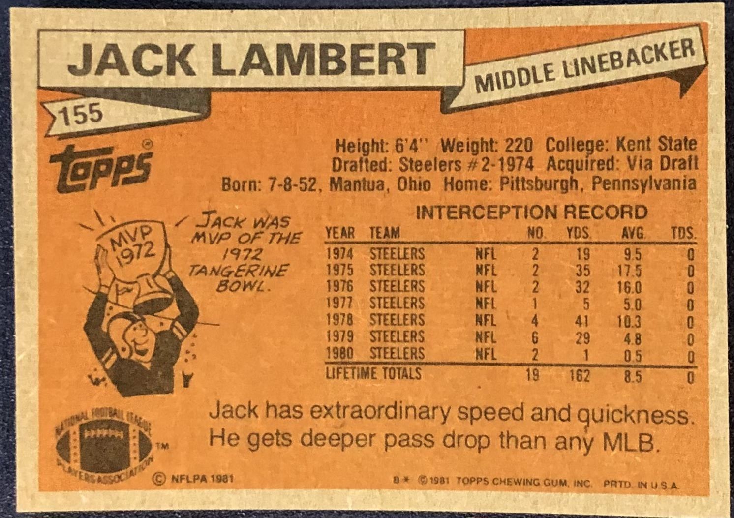 Card #155 vintage, NFL, football, hall of fame