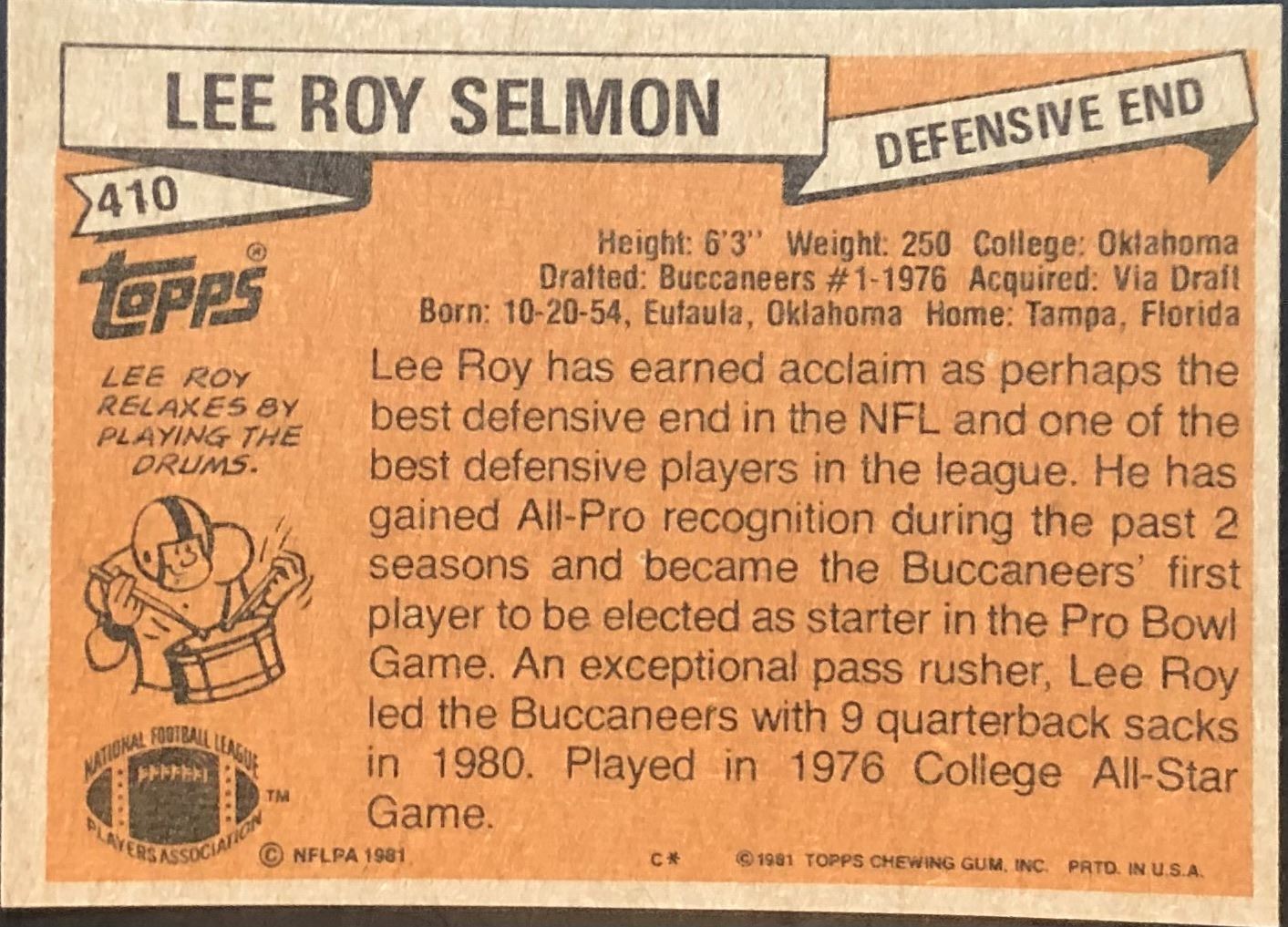 Card #410 vintage, NFL, football, hall of fame