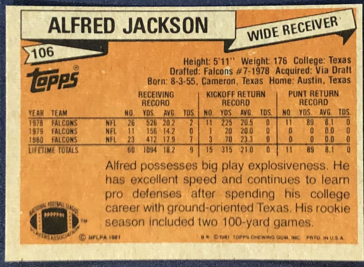Card #106 NFL, football, vintage