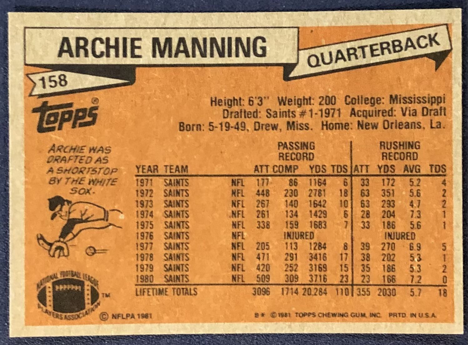 Card #158 NFL, football, vintage