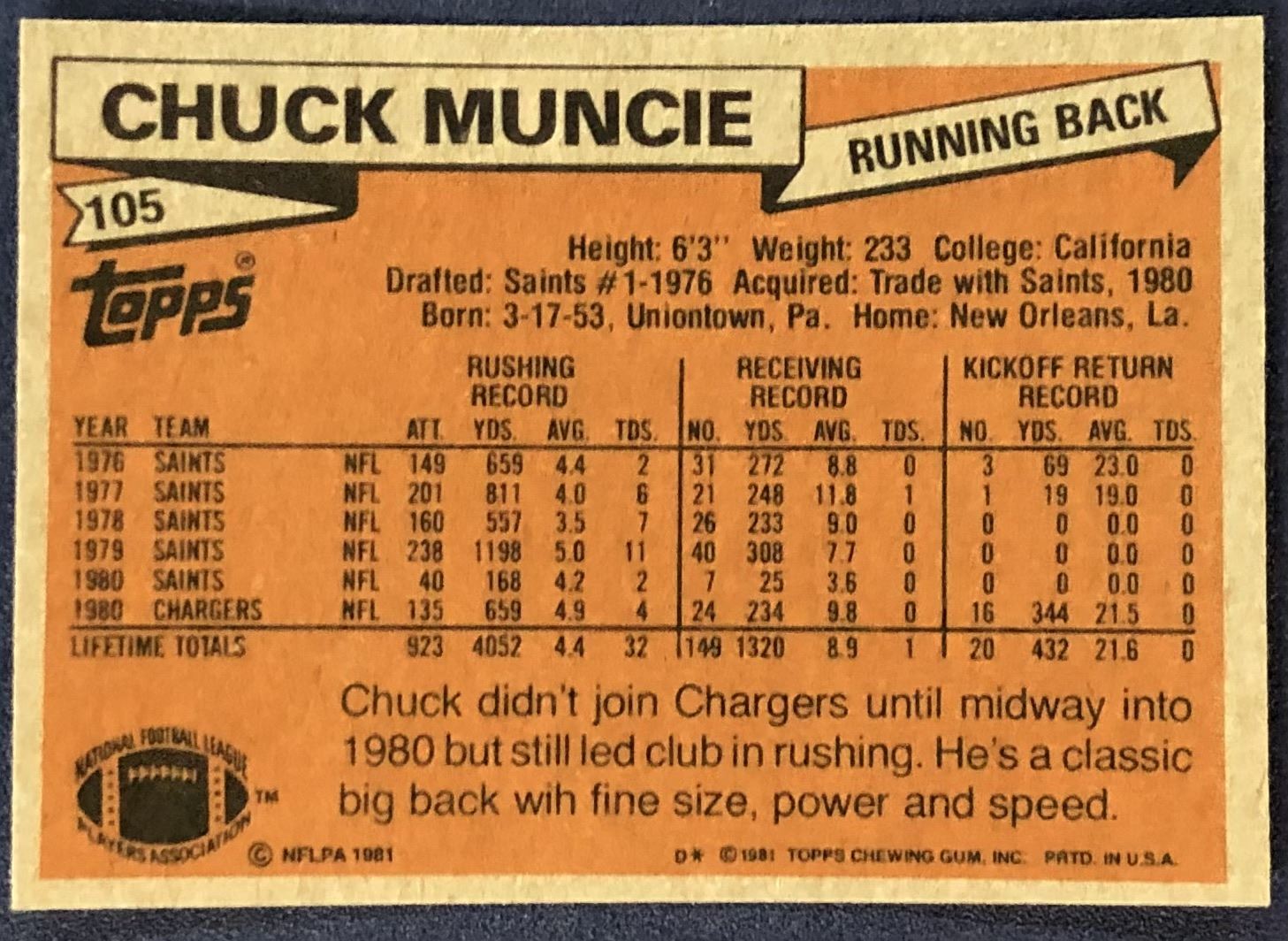 Card #105 NFL, football, vintage