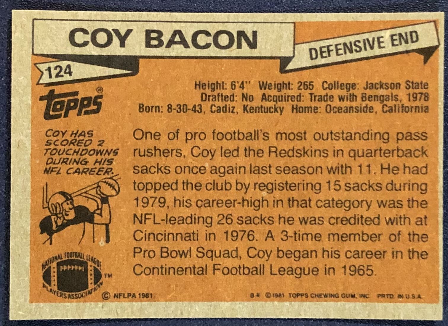Card #124 NFL, football, vintage
